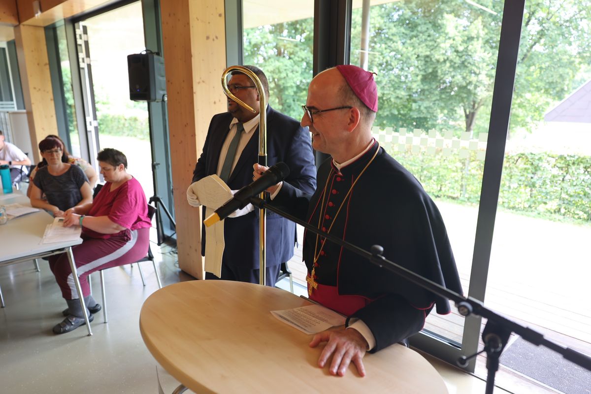 Bischof Dr. Franz Jung feiert in den Werkstätten der Lebenshilfe Schmerlenbach einen Kiliani-Gottesdienst mit Menschen mit Behinderung