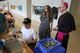Nach dem Schlusssegen überreichten Tamara Losensky und Sven Fischer vom Werkstattbeirat Bischof Jung zum Dank für seinen Besuch einen Präsentkorb mit Produkten, die in den Werkstätten der Lebenshilfe hergestellt werden.