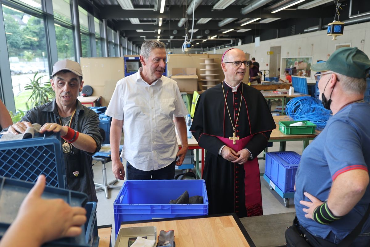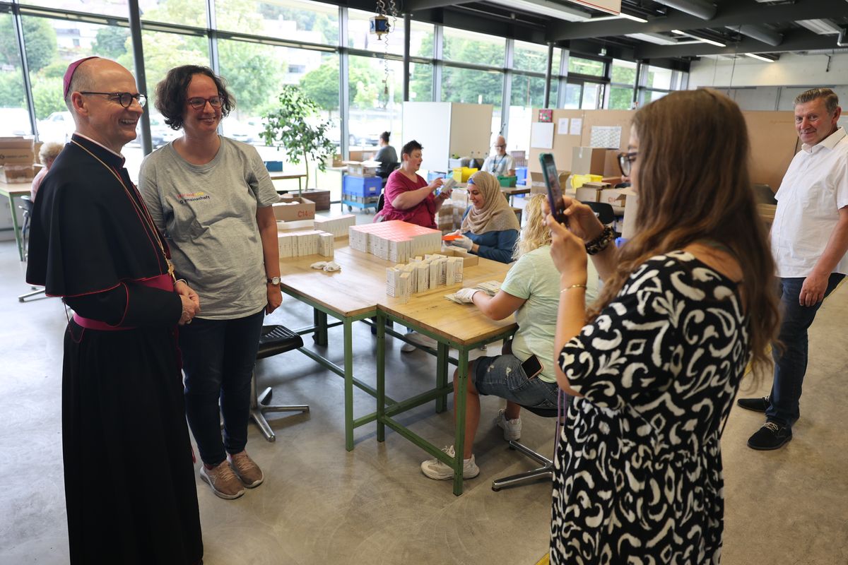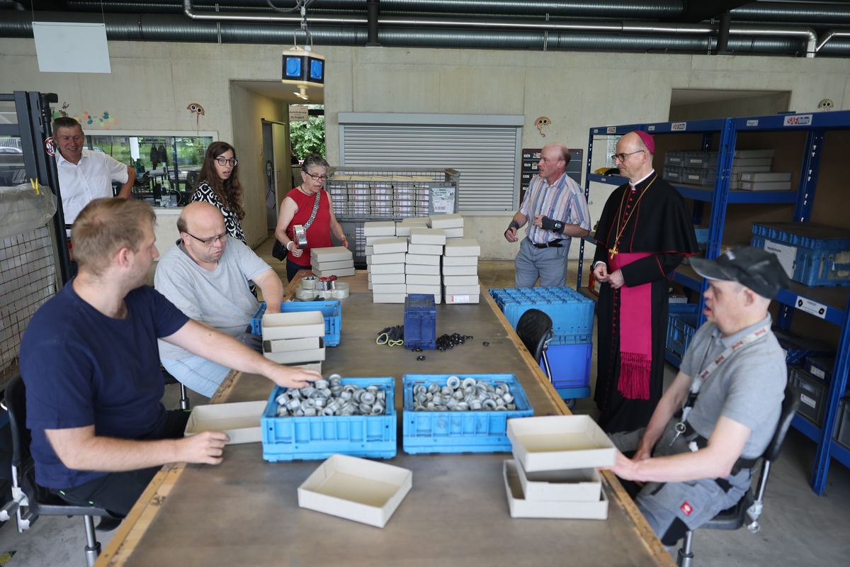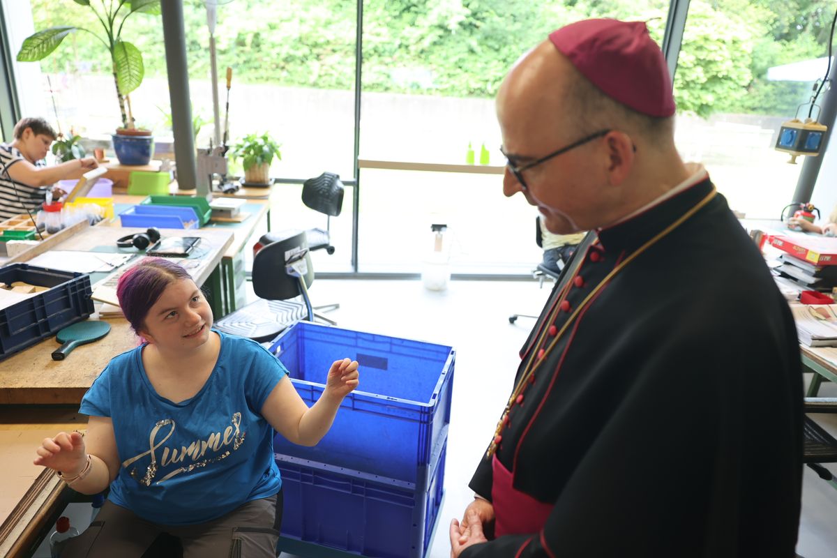 Sozialarbeiterin Laura Feser führte den Bischof durch die Werkstätten.