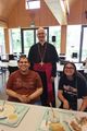 Werkstattleiter Dieter Jakob (3. von links) und due Sven Fischer (links) und Tamara Losensky vom Werrkstattrat dankten Bischof Dr. Franz Jung für den gemeinsamen Gottesdienst.
