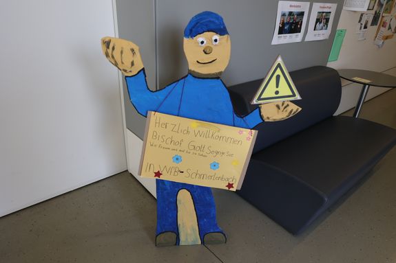 Dieses Schild erwartete den Bischof im Eingangsbereich.