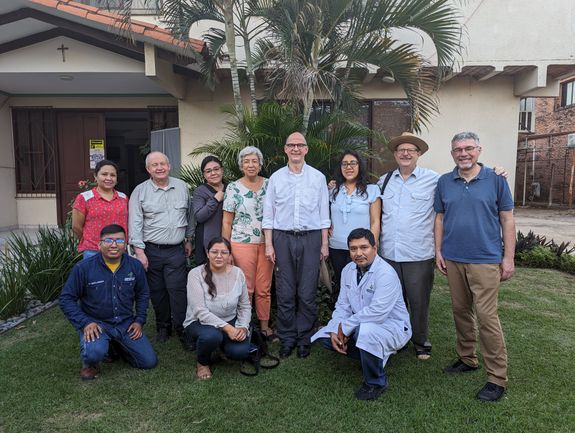 Bei einer Pastoralreise besucht der Bischof bis Sonntag, 5. Mai, zum ersten Mal insgesamt fünf Missionare aus dem Bistum Würzburg. „Ich freue mich ganz besonders, unsere Würzburger Mitbrüder zu treffen und zu sehen, in welchen Kontexten sie hier in Bolivien leben. Bisher haben wir uns immer nur bei den Begegnungen in der Kiliani-Woche getroffen“, sagte der Bischof. Den Anfang machten die Priester Thomas Hermes und Christian Müssig in Santa Cruz de la Sierra. Müssig zeigte seine Pfarrei „La Sagrada Familia“ – zur Heiligen Familie. Neben der Kirche stehen auf dem Gelände der Pfarrei ein Pfarrhaus mit Pfarrbüro und Gästezimmern, ein Kiosk für Jugendgruppen und ein Pfarrheim für verschiedene Gruppierungen. Ein weiteres Gebäude stellt die Pfarrei einer Psychologin zur Verfügung. Das Land Bolivien beeindruckt den Bischof. „Einmal natürlich die weiten Entfernungen aufgrund der Größe des Landes mit den vielen unterschiedlichen Klimazonen, die wir diese Woche auch noch erleben werden. Und natürlich das bolivianische Lebensgefühl, das auch die Pastoral prägt.“ Am Nachmittag besuchte der Bischof zusammen mit Müssig den Diözesan-Caritasverband von Santa Cruz de la Sierra. Dort wurde die Arbeit des Verbands vorgestellt. Eine Besonderheit war ein Labor, in dem Wasser untersucht wird. Damit verdient die Caritas Geld, um andere Aufgaben umzusetzen. Ein weiterer Schwerpunkt war das Thema Prävention. Auch in Bolivien wird daran gearbeitet, die Caritas hat 1000 bis 1200 Menschen in diesem Bereich geschult.