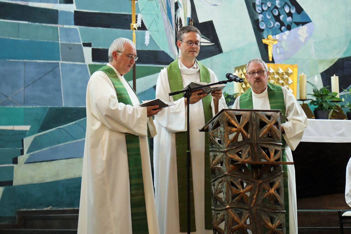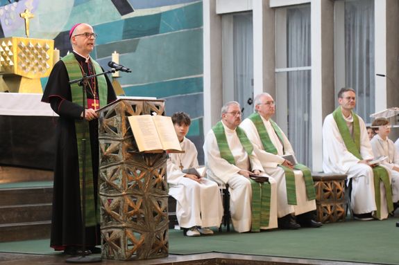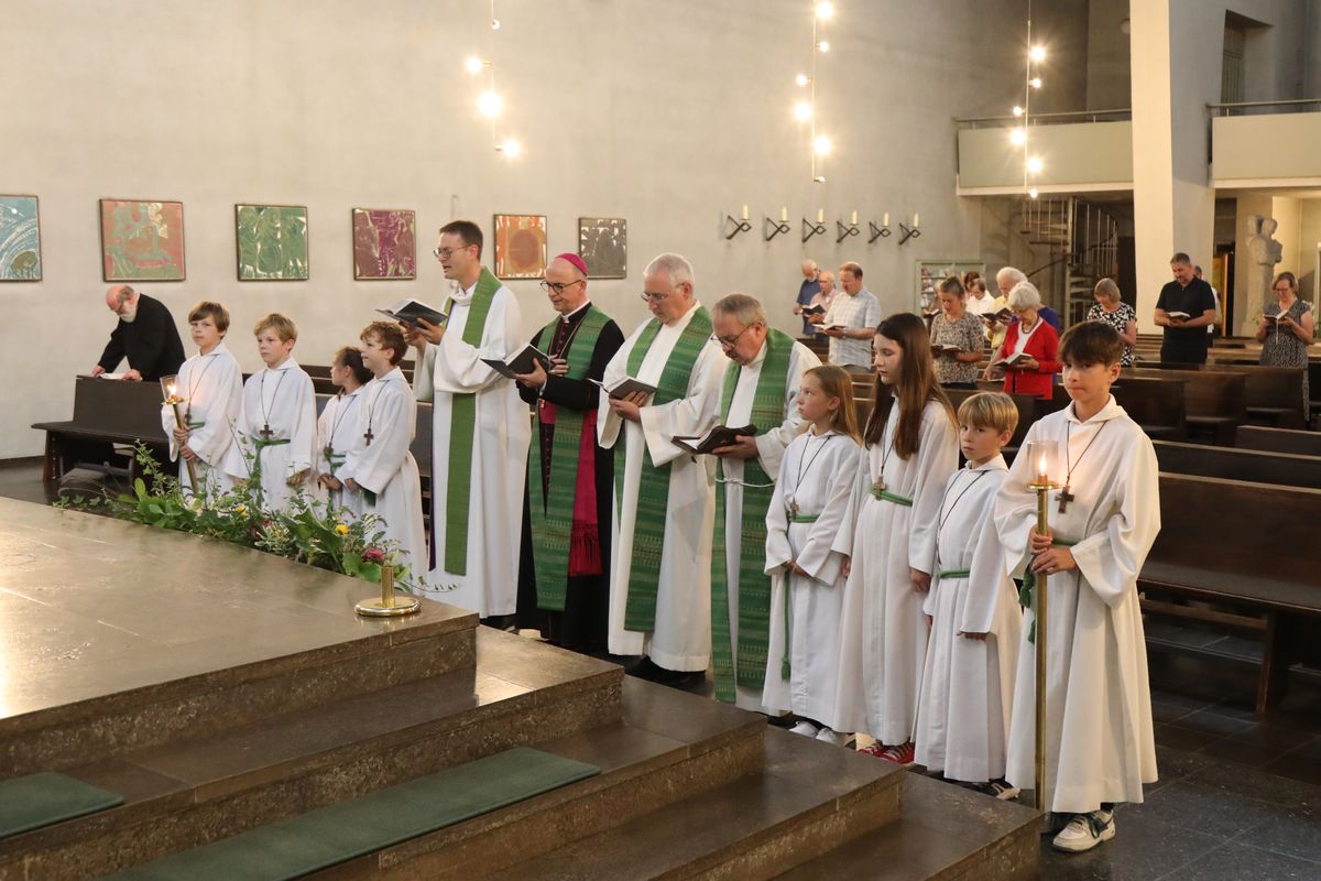„Ich weiß, wie sehr die Menschen Ihre Begleitung und Ihre Wegweisung geschätzt haben, über sieben Jahrzehnte hinweg hier auf der Keesburg und viele Jahre im Frauenland, im Heimgarten, in Gerbrunn, Rottendorf und Rothof. Möge diese Dankbarkeit auch Ihnen Trost und Kraftquelle sein für das, was da kommt“, sagte der Bischof in seiner Predigt. Er feierte die Vesper gemeinsam mit den Redemptoristenpatres Friedrich Vystrcil, Martin König und Bernd Wagner. In jedem Ende liege die Chance zu einem neuen Anfang, sagte Bischof Jung. Er wünschte den Patres, dass sie an den Orten, an die ihr Charisma sie nun führe, gut neu anfangen können. „Die Freude über die Größe Gottes möge Sie tragen bei all Ihren weiteren Schritten und Unternehmungen.“ Im Jahr 1954 übernahmen die Redemptoristen die neugegründete Pfarrei Sankt Alfons auf der Keesburg und bauten sie auf. Im Zuge der Gründung der Pfarreiengemeinschaft Würzburg-Ost wuchs der Verantwortungsbereich mit der Übernahme der Pfarreien Unsere Liebe Frau, Sankt Barbara, Sankt Nikolaus Gerbrunn und Sankt Vitus Rottendorf (mit der Filiale Rothof) weit über Sankt Alfons hinaus.