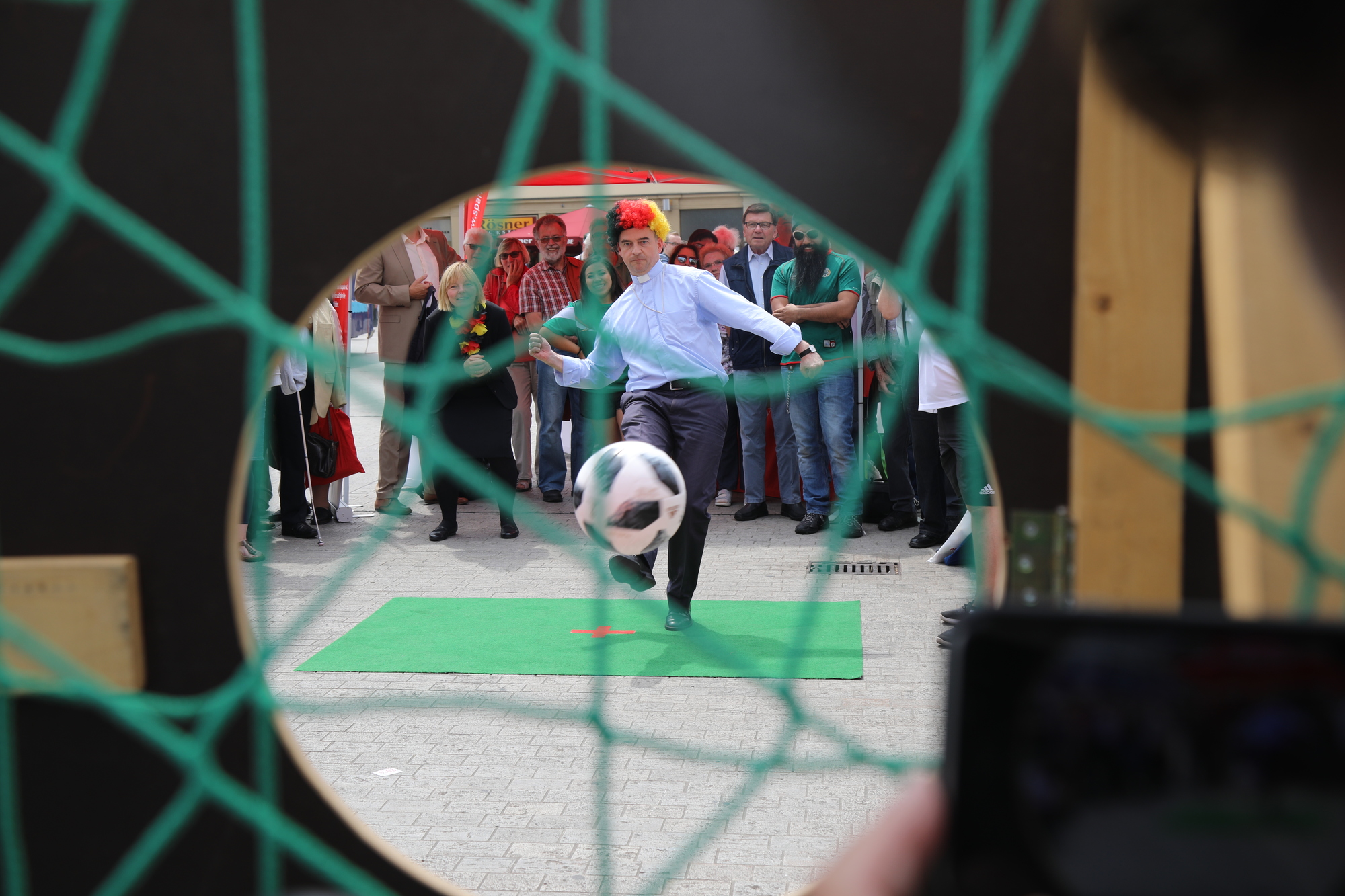 Bischof Jung erzielt Siegtreffer beim Torwandschießen