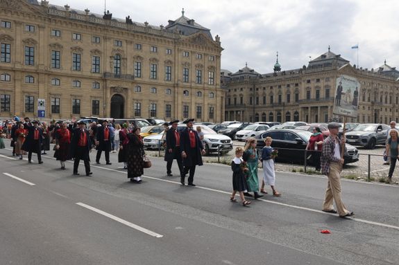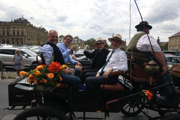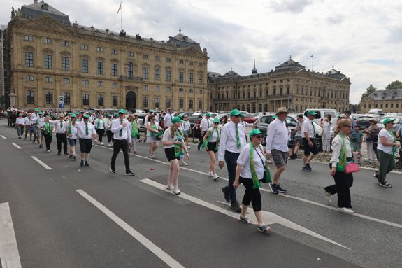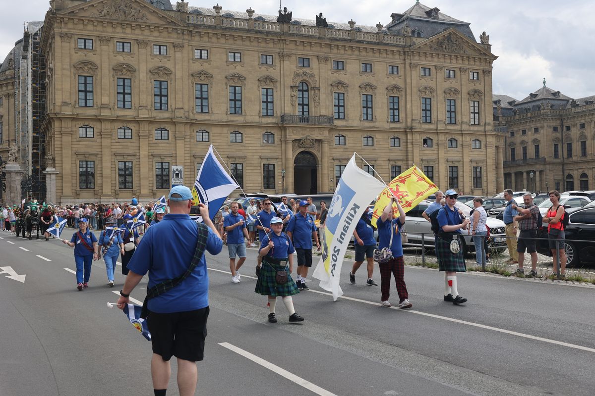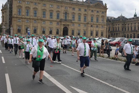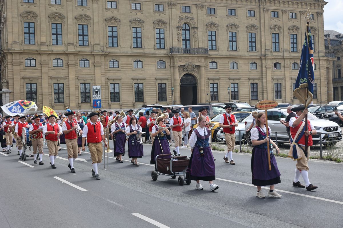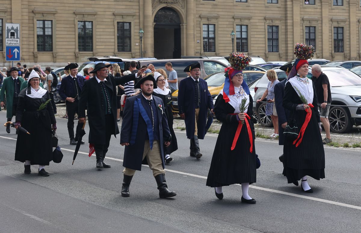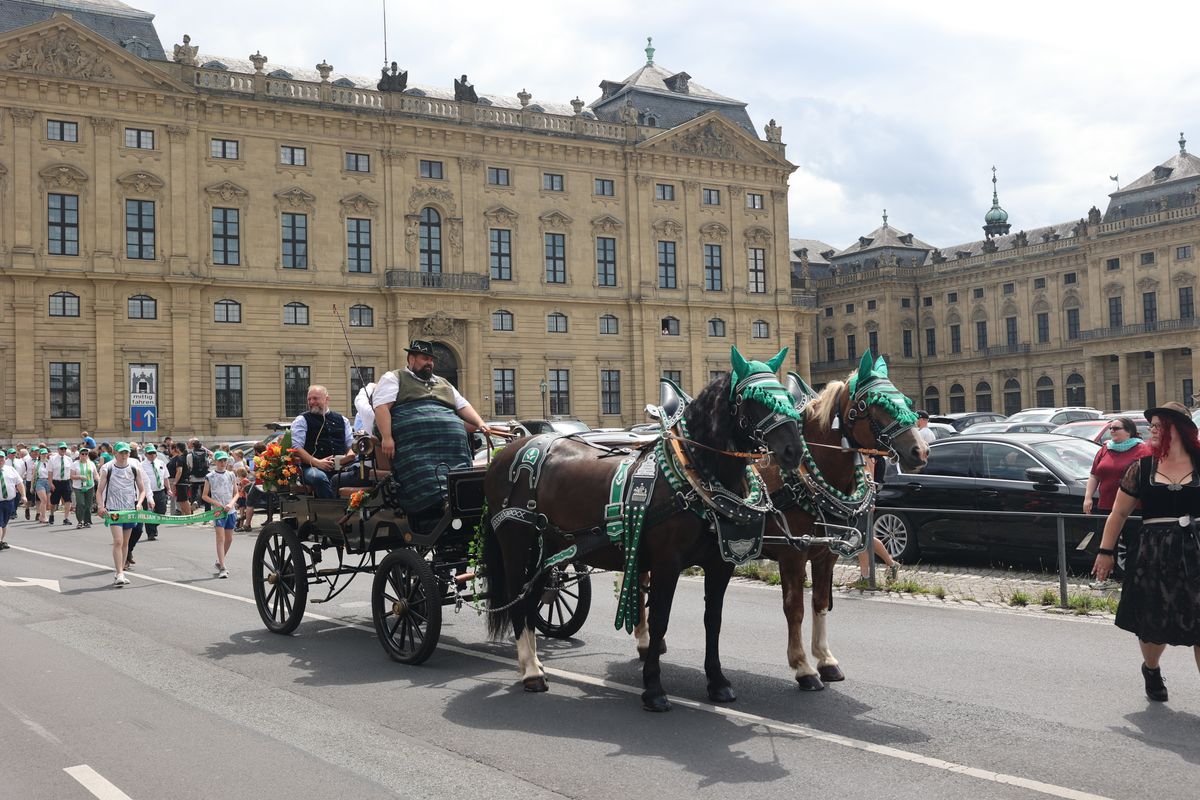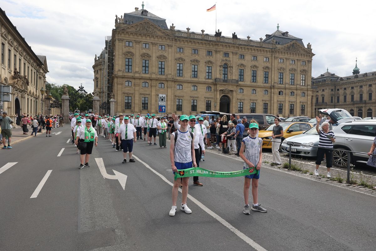 Er saß gemeinsam mit dem irischen Botschafter in Deutschland, Dr. Nicholas O'Brien, Thomas Eberth, Landrat des Landkreises Würzburg, und Würzburgs Bürgermeister Martin Heilig in einer Pferdekutsche. Zahlreiche Trachten- und Musikgruppen formten einen langen Zug. Vor der Kutsche mit dem Bischof lief eine Delegation aus Würzburgs Partnerstadt Dundee in Schottland, dahinter eine Delegation aus Mullagh in Irland, dem Geburtsort des heiligen Kilian. Letztere war an den landestypischen grünen Halstüchern, Kappen und Krawatten leicht zu erkennen.
