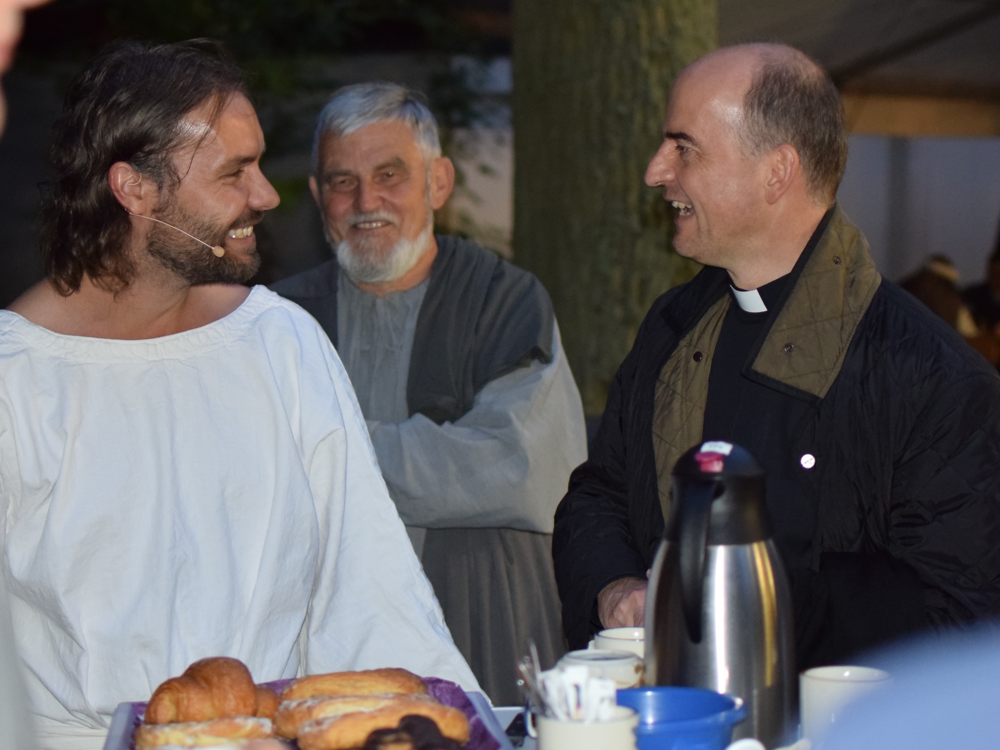 „Mich haben die Professionalität und zugleich die tiefe Ernsthaftigkeit berührt, mit der das Leiden und Sterben Christi auf die Bühne gebracht wird“, sagte der Bischof im Anschluss. Viele Szenen hätten ihn emotional tief ergriffen, zum Beispiel Jesu Ringen am Ölberg oder die Dialoge mit Judas. „Besonders hat mich fasziniert, dass das Vaterunser die Klammer um das ganze Geschehen bildet und so ein direkter Bezug zum Alltag jedes Einzelnen hergestellt wird.“