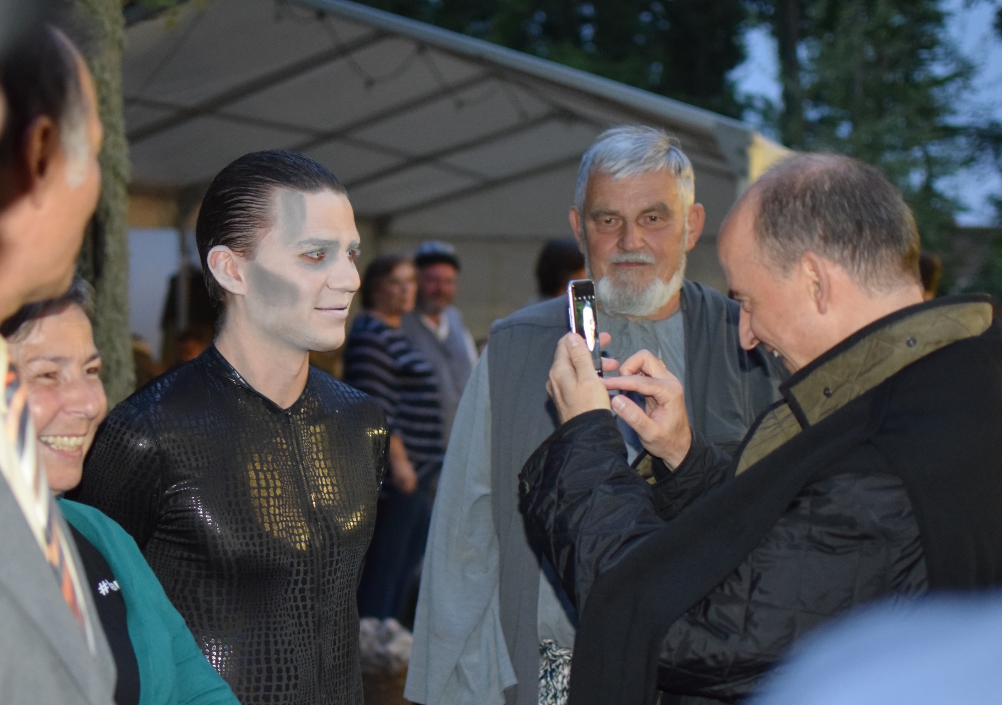 Sömmersdorf (POW) Bischof Dr. Franz Jung hat am Samstagabend, 21. Juli, die Passionsspiele in Sömmersdorf (Landkreis Schweinfurt) besucht. In der Pause der abendlichen Aufführung traf er die Mitwirkenden hinter der Bühne und dankte den Frauen und Männern des unterfränkischen Dorfes für ihr Engagement.