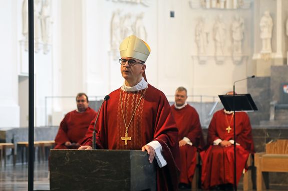 Als guter Hirte sei Wagner nicht geflohen, sondern in seinem Pfarrsprengel geblieben. „Gründe, wegzulaufen und hinzuwerfen, gibt es auch heute genug“, sagte Bischof Jung. Auch wenn man nicht täglich den Tod vor Augen habe, wie es in vielen Teilen der Welt der Fall sei, zehrten doch das Sterben kirchlichen Lebens und die Unsicherheit über den künftigen Kurs der Kirche an der Kraft. Das Beispiel von Liborius Wagner möge als Ansporn dienen, schloss der Bischof.