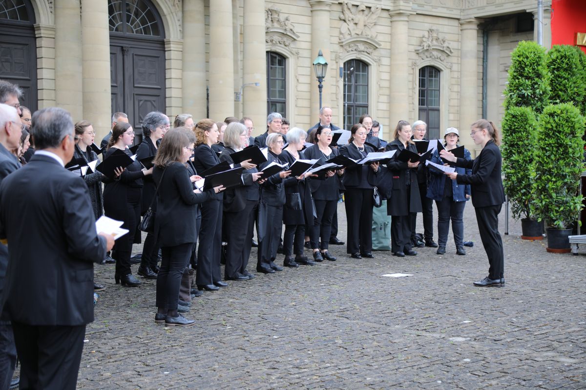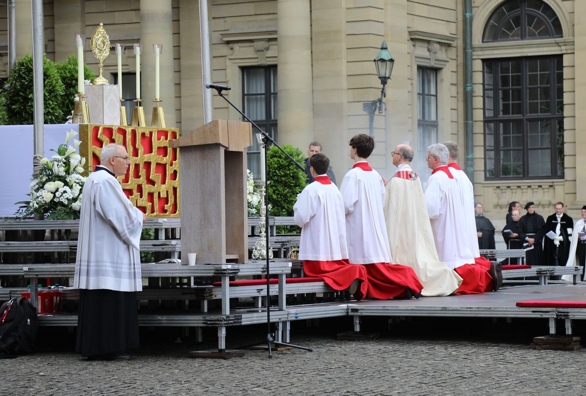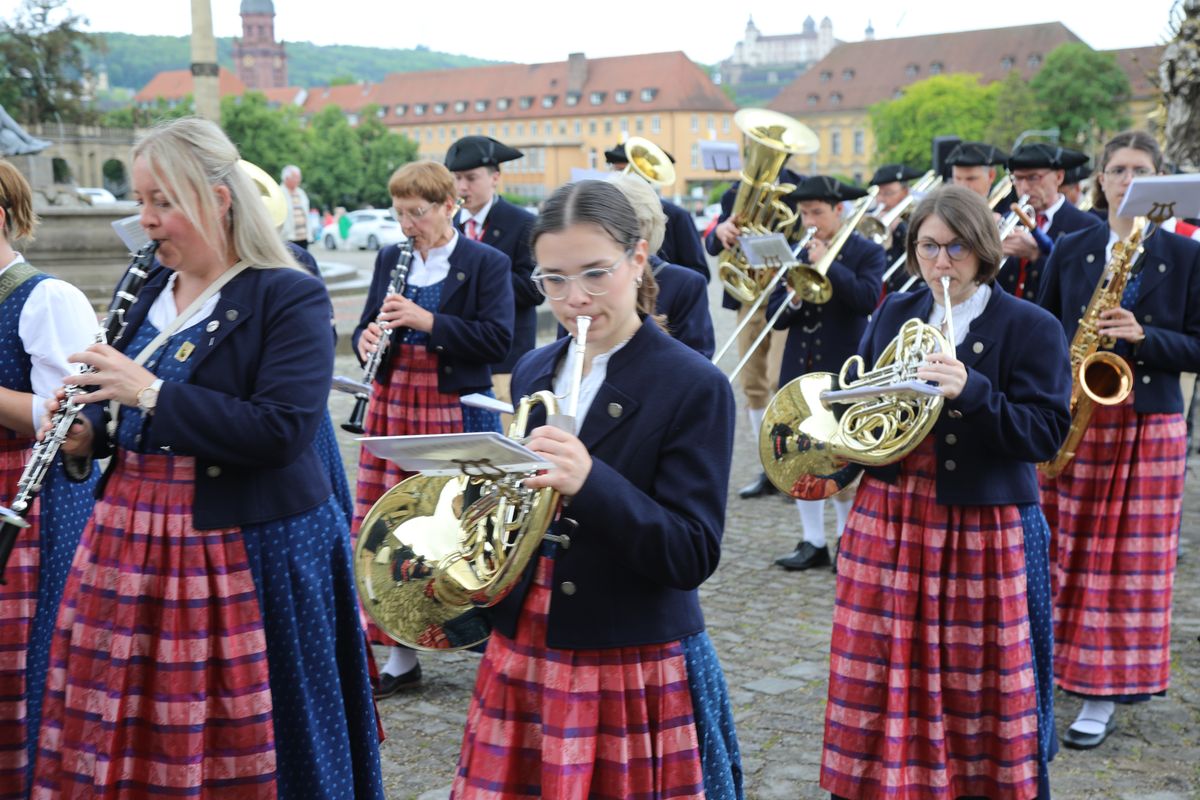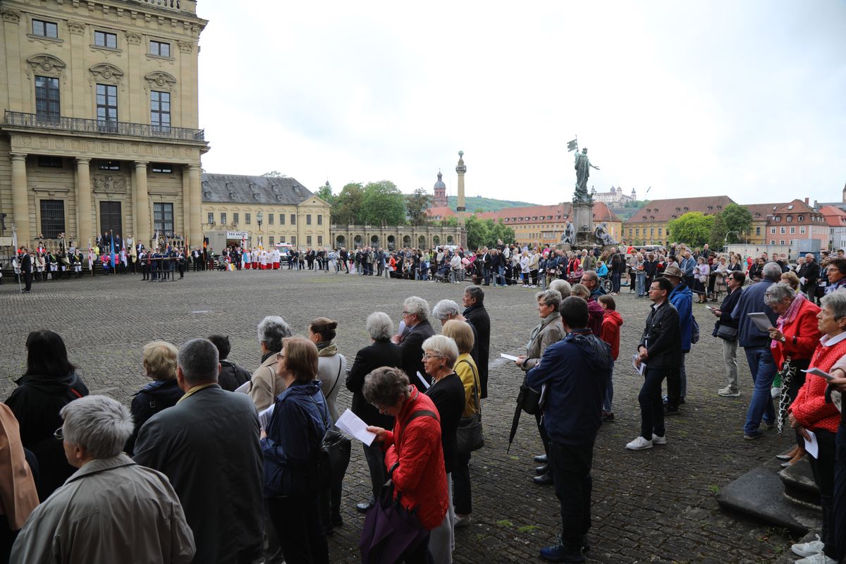 Das Pontifikalamt sowie die Feier vor dem Stationsaltar an der Residenz gestalteten der Domchor unter der Leitung von Lena Herber, Assistentin des Domkapellmeisters, sowie das Symphonische Blasorchester Kürnach unter der Leitung von Stefan Wunderlich unter anderem mit der „Missa Aeterna Christi munera“ von Giovanni P. da Palestrina, „Gehet, und verkündet der Welt“ von Max Reger und „Exsultate Deo“ von Alessandro Scarlatti. Kantorin war Juliane Zeuch, die Domorgel spielte Domorganist Professor Stefan Schmidt.