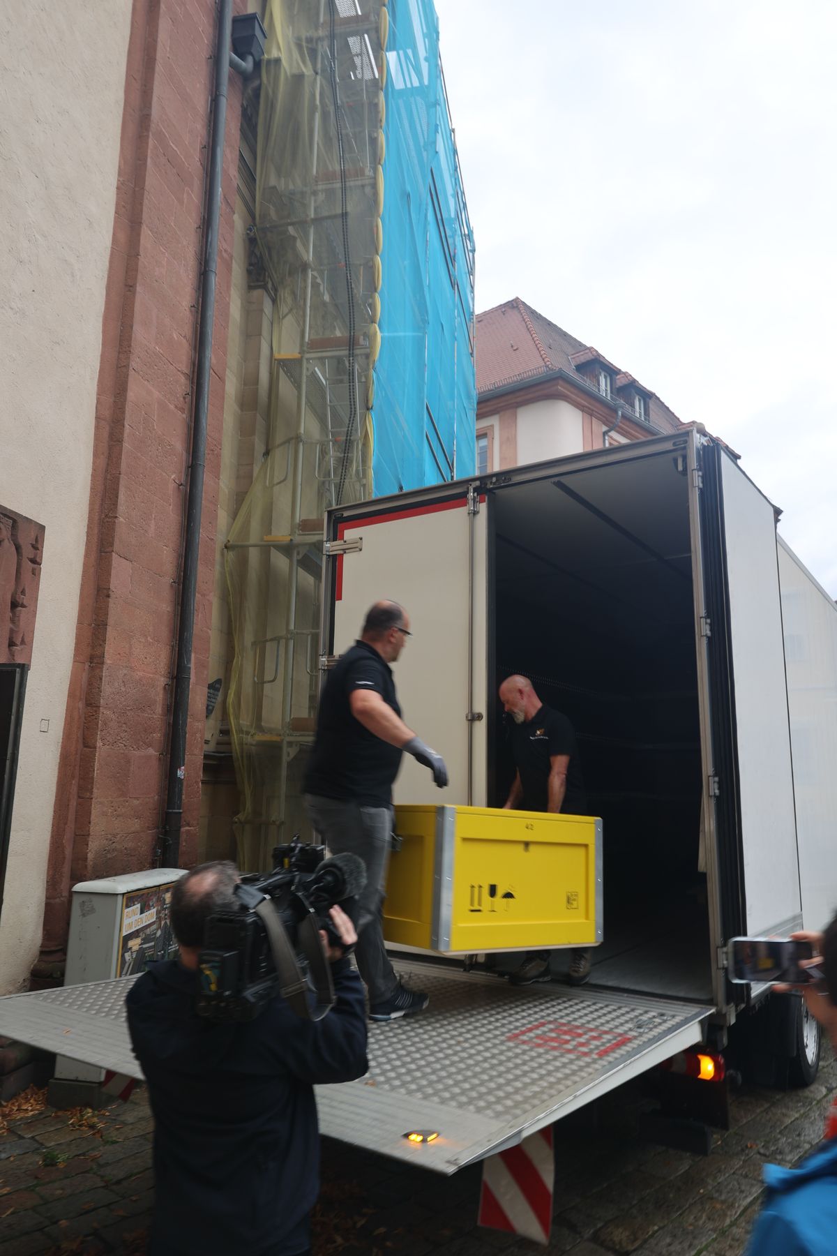 Auch das Tragegestell für den Kiliansschrein wurde für den Transport sicher verpackt.