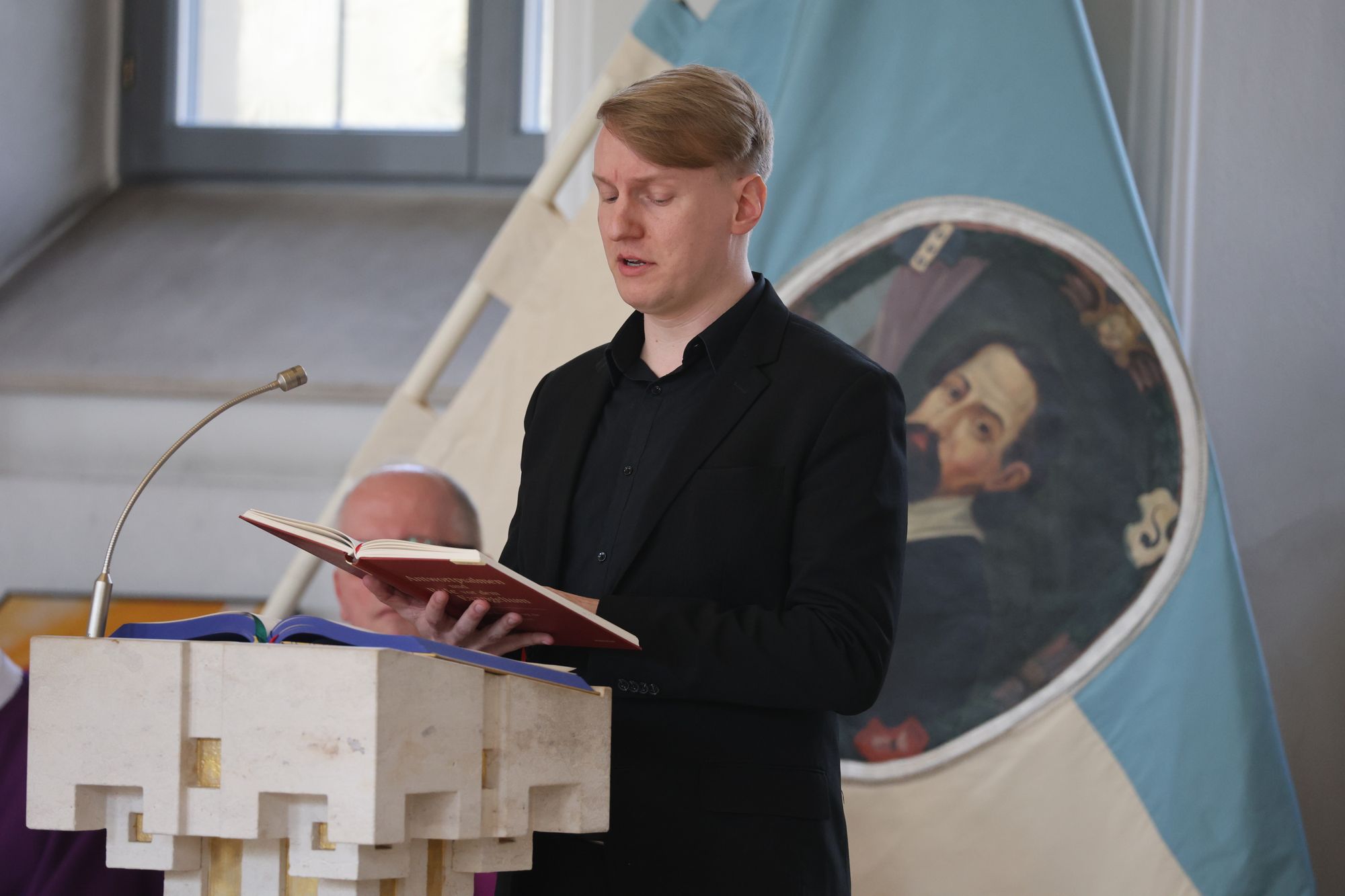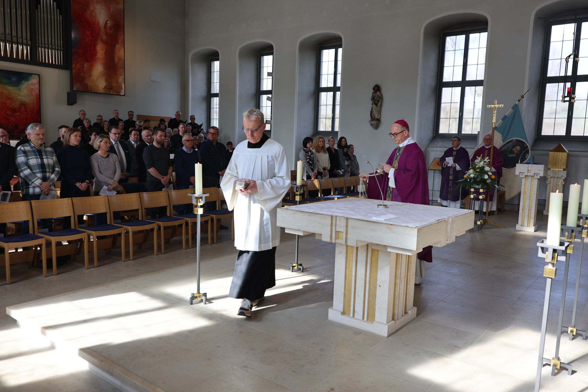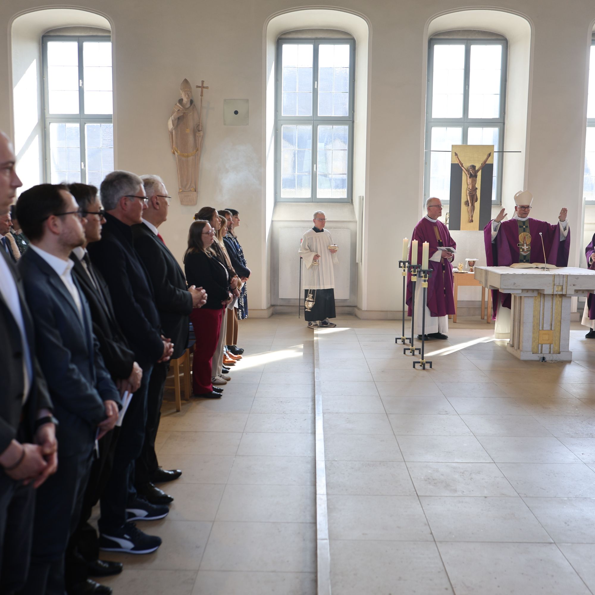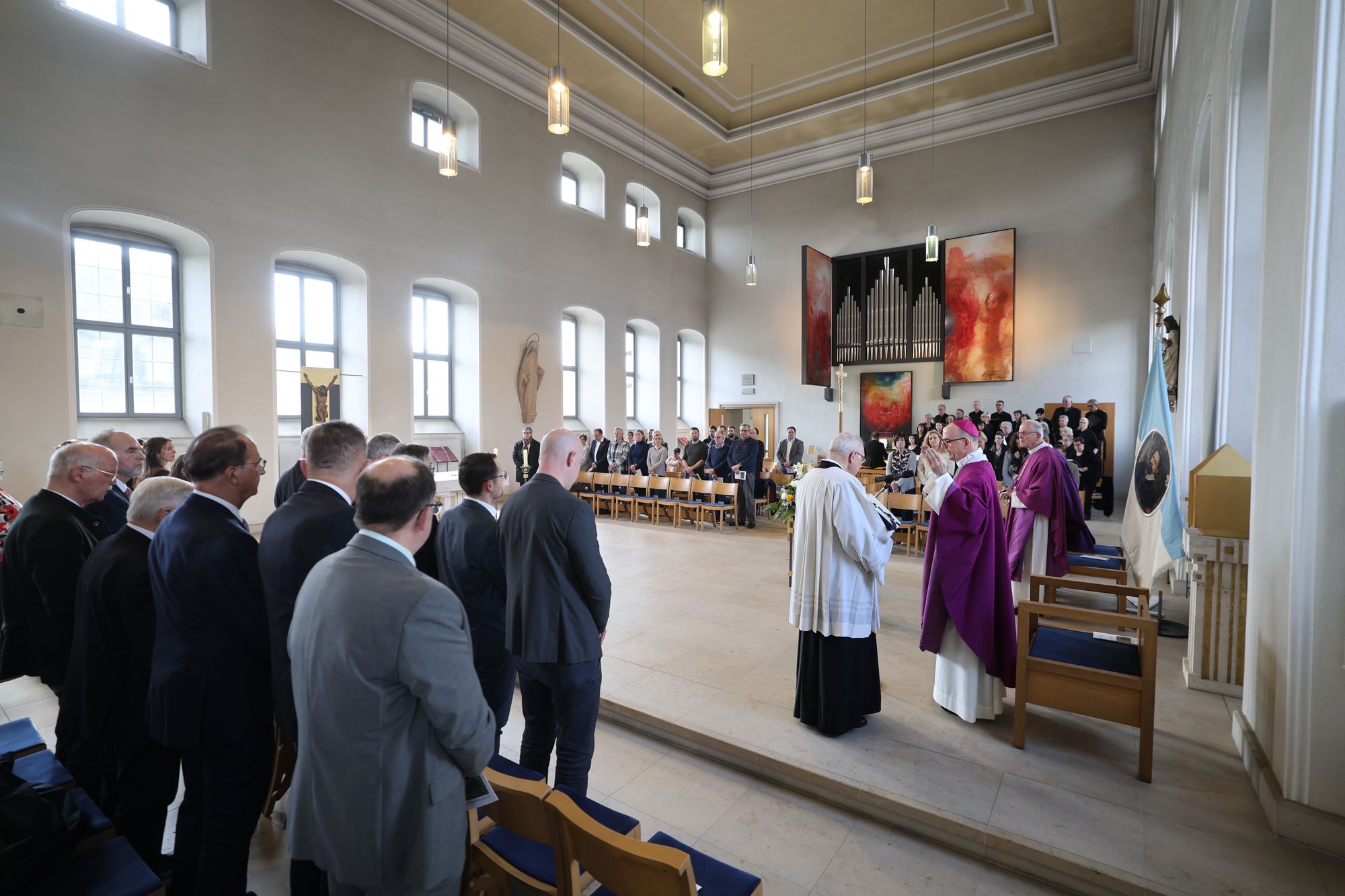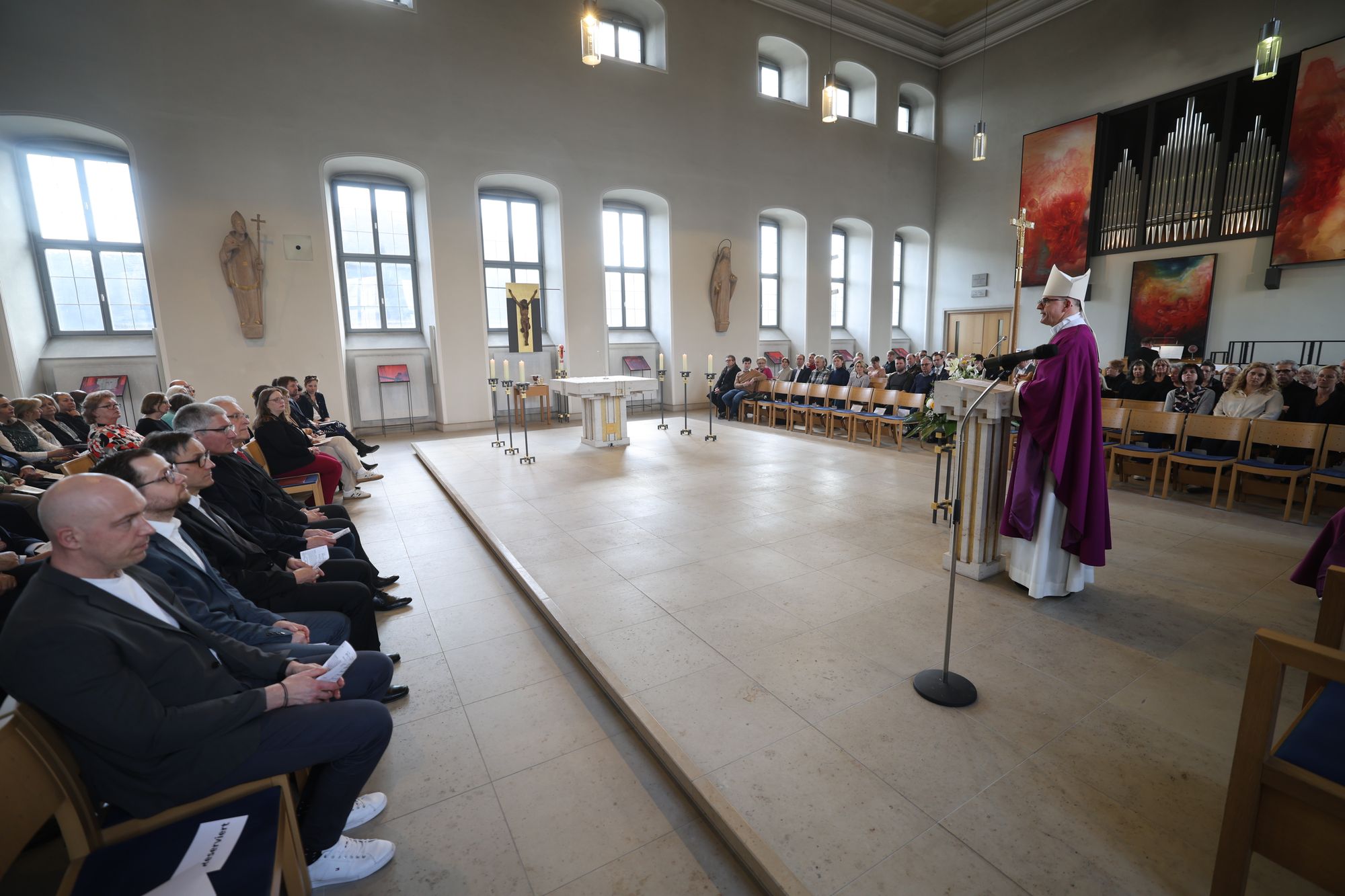 Würzburg (POW) 450 Jahre besteht das Würzburger Juliusspital. „Eine beeindruckende Bilanz, die nur wenige aufweisen können“, attestierte Bischof Dr. Franz Jung bei einem Festgottesdienst in der Kilianskirche des Würzburger Juliusspitals am Donnerstag, 12. März. Anlass war das Jubiläum der Grundsteinlegung der Einrichtung am 12. März 1576. Den Gottesdienst feierten Bayerns Innenminister Joachim Herrmann, die Mitglieder des Oberpflegamts des Juliusspitals sowie Mitarbeiterinnen und Mitarbeiter der Stiftung mit. Bischof Jung ermunterte, mit Beharrlichkeit aktuelle Herausforderungen anzugehen: „Flexibel auf Herausforderungen reagieren, ohne verbohrt oder nachgiebig zu sein“, sei eine Lehre aus dem Handeln Julius Echters.