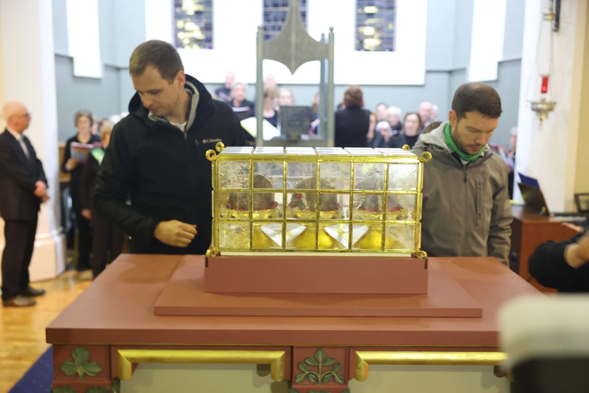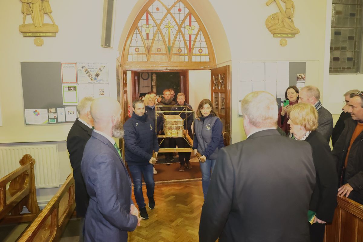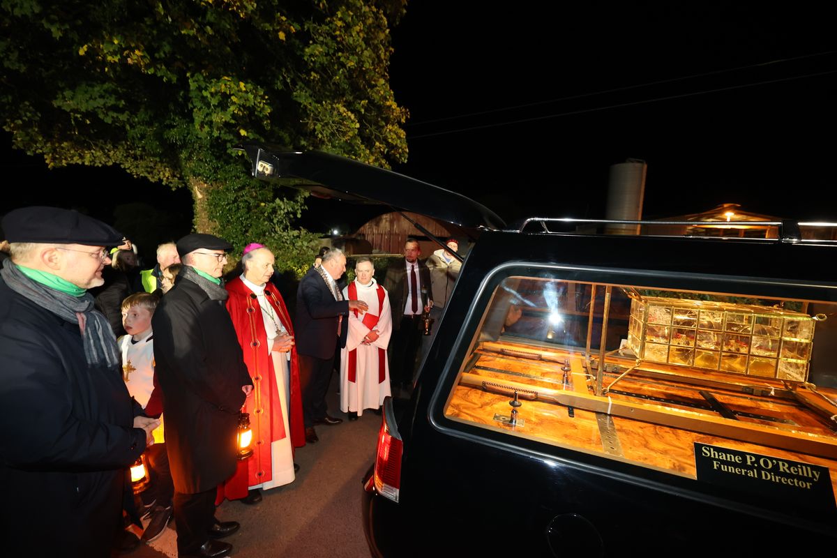 Während die Pilgergruppe aus Deutschland mit Bussen ins Hotel zurückkehrt, halten in der Kilianskirche von Mullagh die ganze Nacht hindurch bis zur Morgenmesse um sieben Uhr im Wechsel Gruppen aus dem Ort und den umliegenden Pfarreien im Gebet Wache beim Reliquienschrein. Es sei kein Problem gewesen, dafür Leute zu finden, berichtet der Pfarrer: Der lang ersehnte Besucher Kilian samt Gefährten ist endlich daheim.