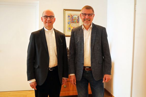 Bischof Dr. Franz Jung und Herr Otmar Finger, früherer Leiter der Liegenschaftsabteilung des Bischöflichen Ordinariats Würzburg und ehemaliger Geschäftsführer der SBW-Bauträger- und Verwaltungs-GmbH, haben sich jüngst in der zwischen ihnen schwebenden Auseinandersetzung angenähert und eine Versöhnung erreicht.