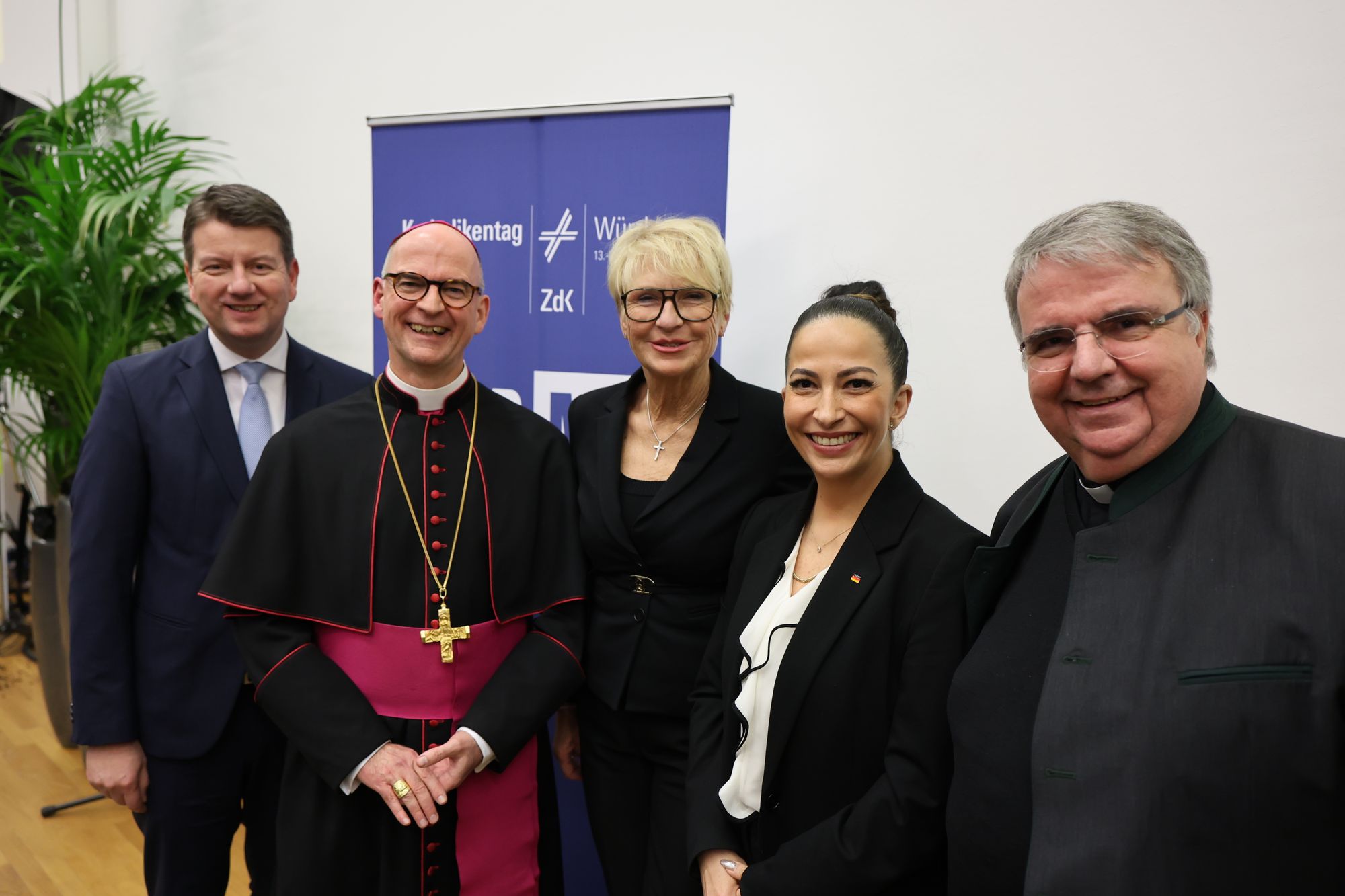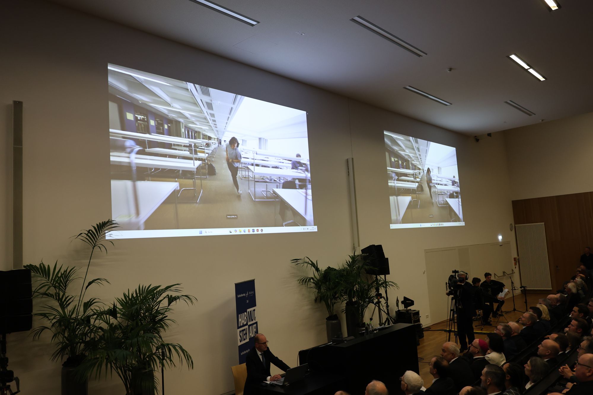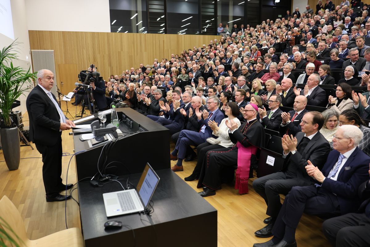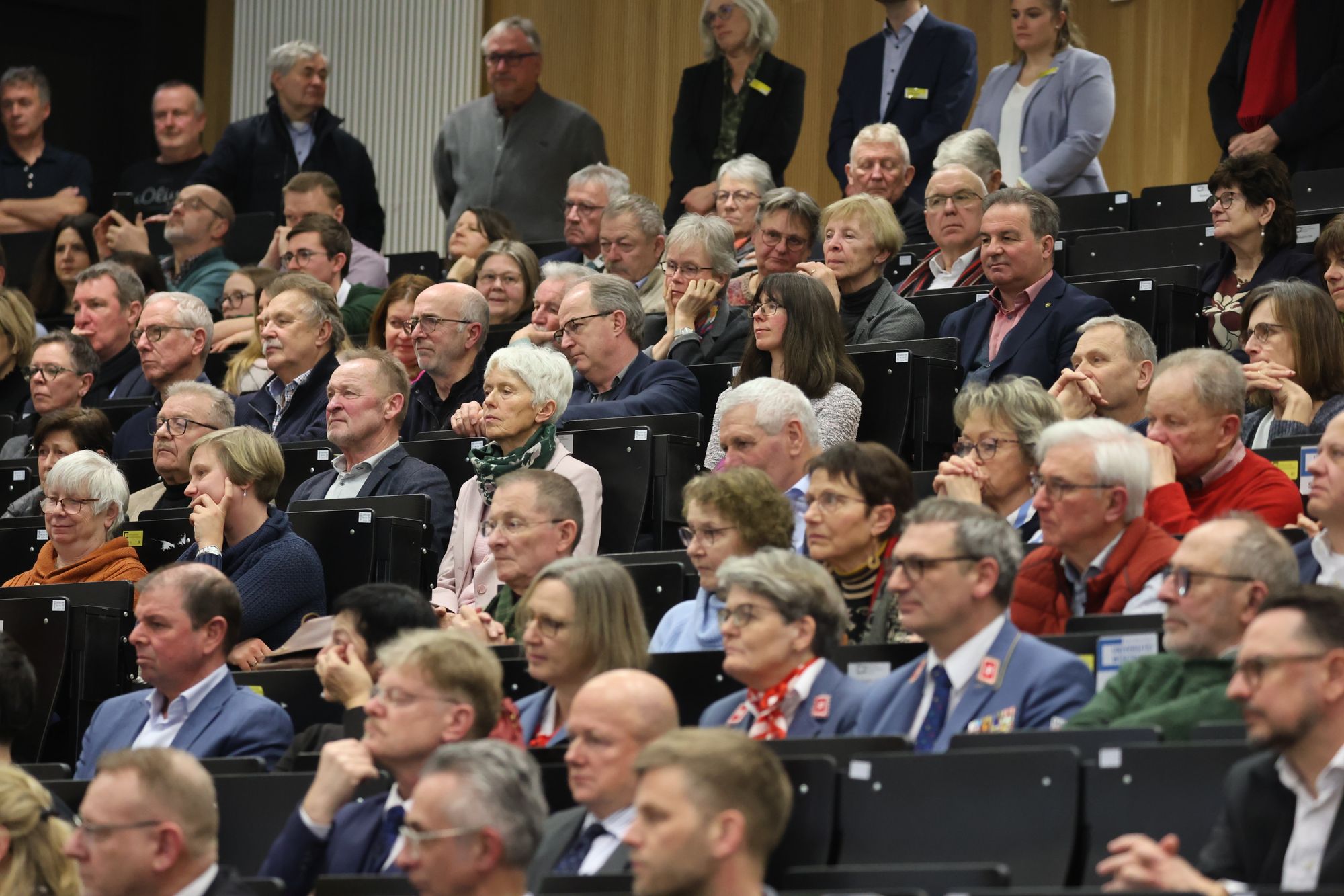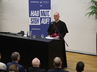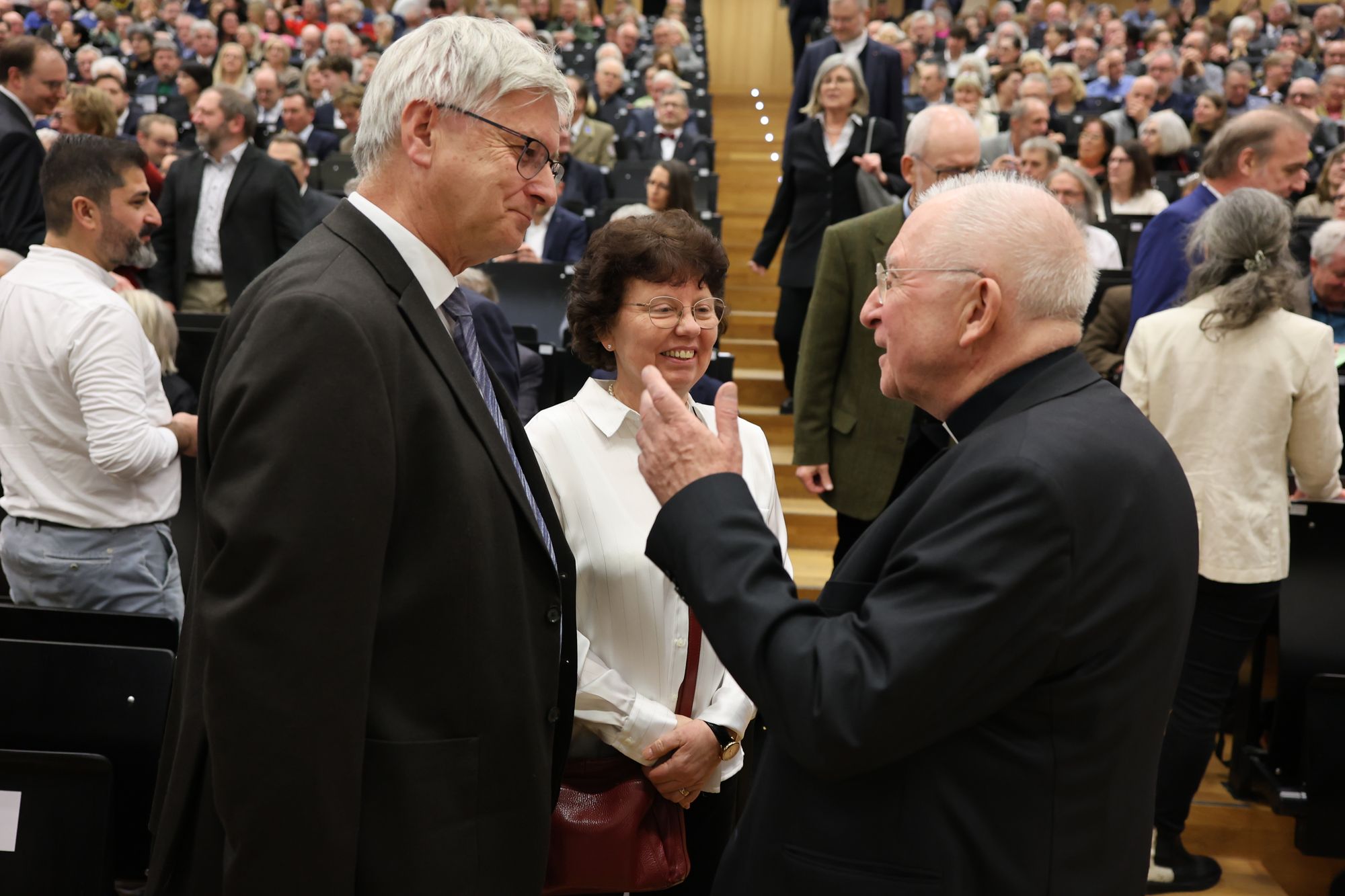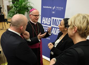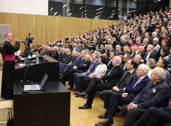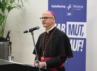 Dem Publikum gab der Bischof mit Blick auf das Leitwort „Hab Mut, steh auf!“ mit auf den Weg: „Hab Mut, steh auf für den demokratischen Rechtsstaat mit seiner Rechtsordnung, in dem zu leben wir das große Privileg und Glück haben. Steh mutig auf, die geltenden Wege der Normfindung und des Aushandelns politischer Streitfragen stark zu machen. Steh mutig dafür auf, Mehrheiten zu organisieren, die helfen, Missstände in unserem Gemeinwesen abzustellen und gute Lösungen voranzubringen. Steh aber auch dann immer mutig auf, wenn es darum geht, Menschenrechtsverletzungen als solche zu benennen und Menschen in ihrer Würde zu schützen.“