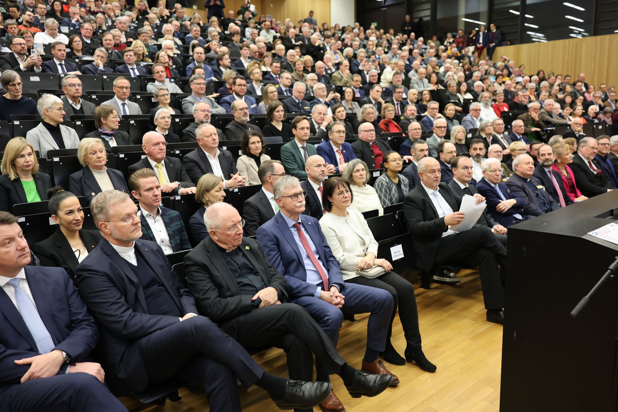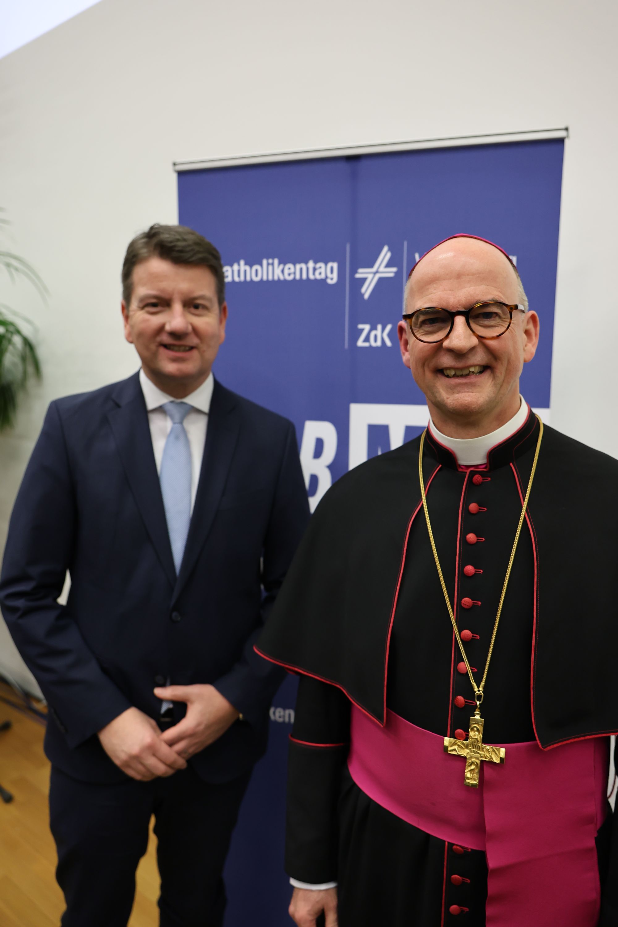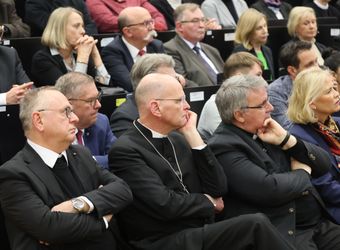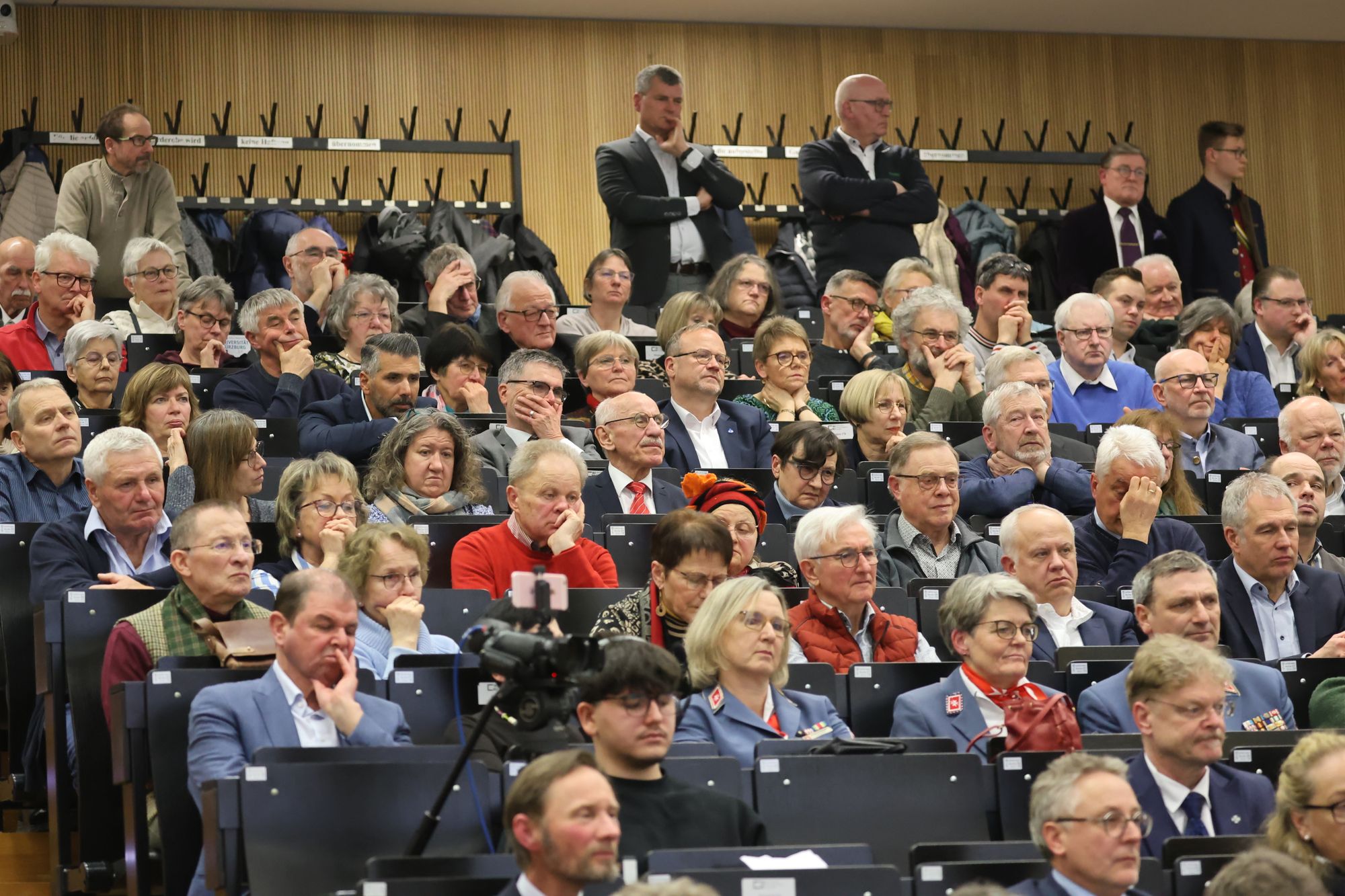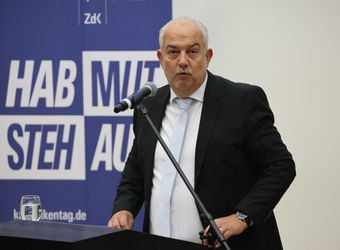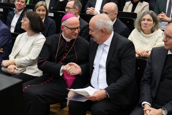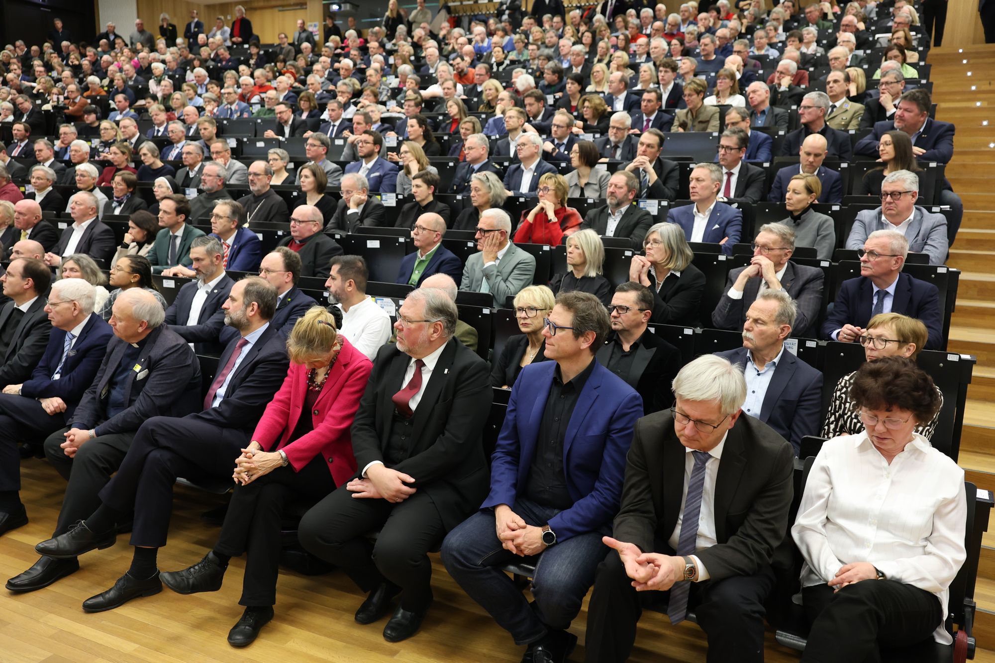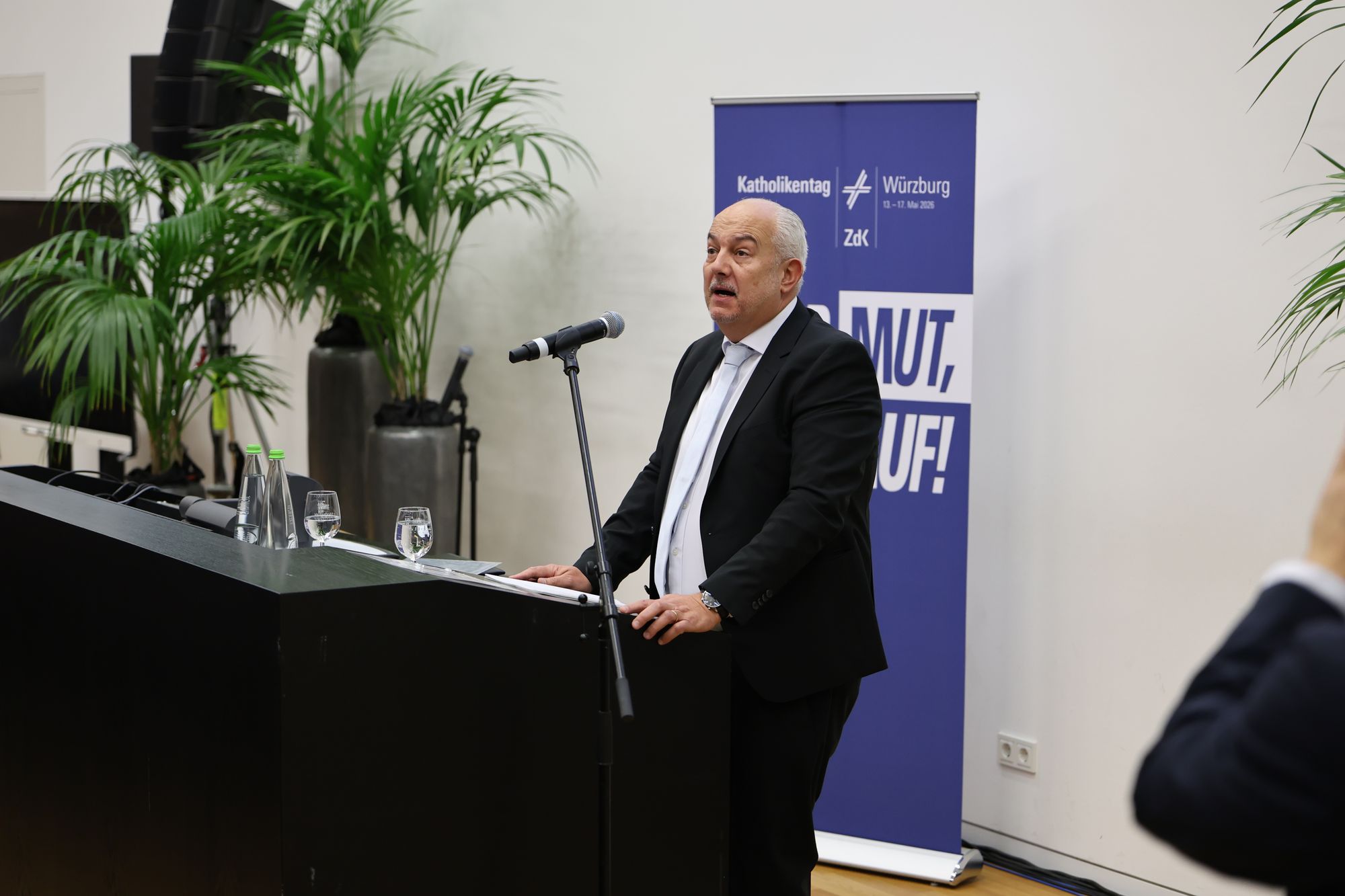 Dem Publikum gab der Bischof mit Blick auf das Leitwort „Hab Mut, steh auf!“ mit auf den Weg: „Hab Mut, steh auf für den demokratischen Rechtsstaat mit seiner Rechtsordnung, in dem zu leben wir das große Privileg und Glück haben. Steh mutig auf, die geltenden Wege der Normfindung und des Aushandelns politischer Streitfragen stark zu machen. Steh mutig dafür auf, Mehrheiten zu organisieren, die helfen, Missstände in unserem Gemeinwesen abzustellen und gute Lösungen voranzubringen. Steh aber auch dann immer mutig auf, wenn es darum geht, Menschenrechtsverletzungen als solche zu benennen und Menschen in ihrer Würde zu schützen.“