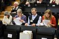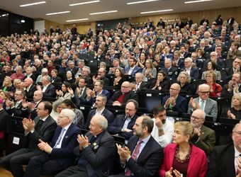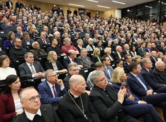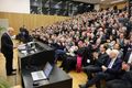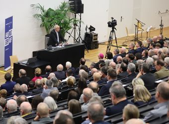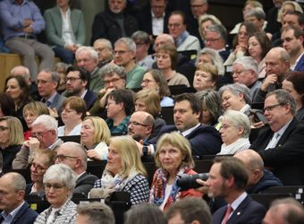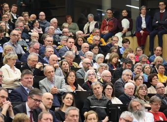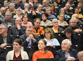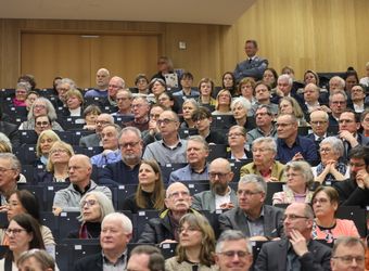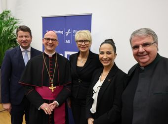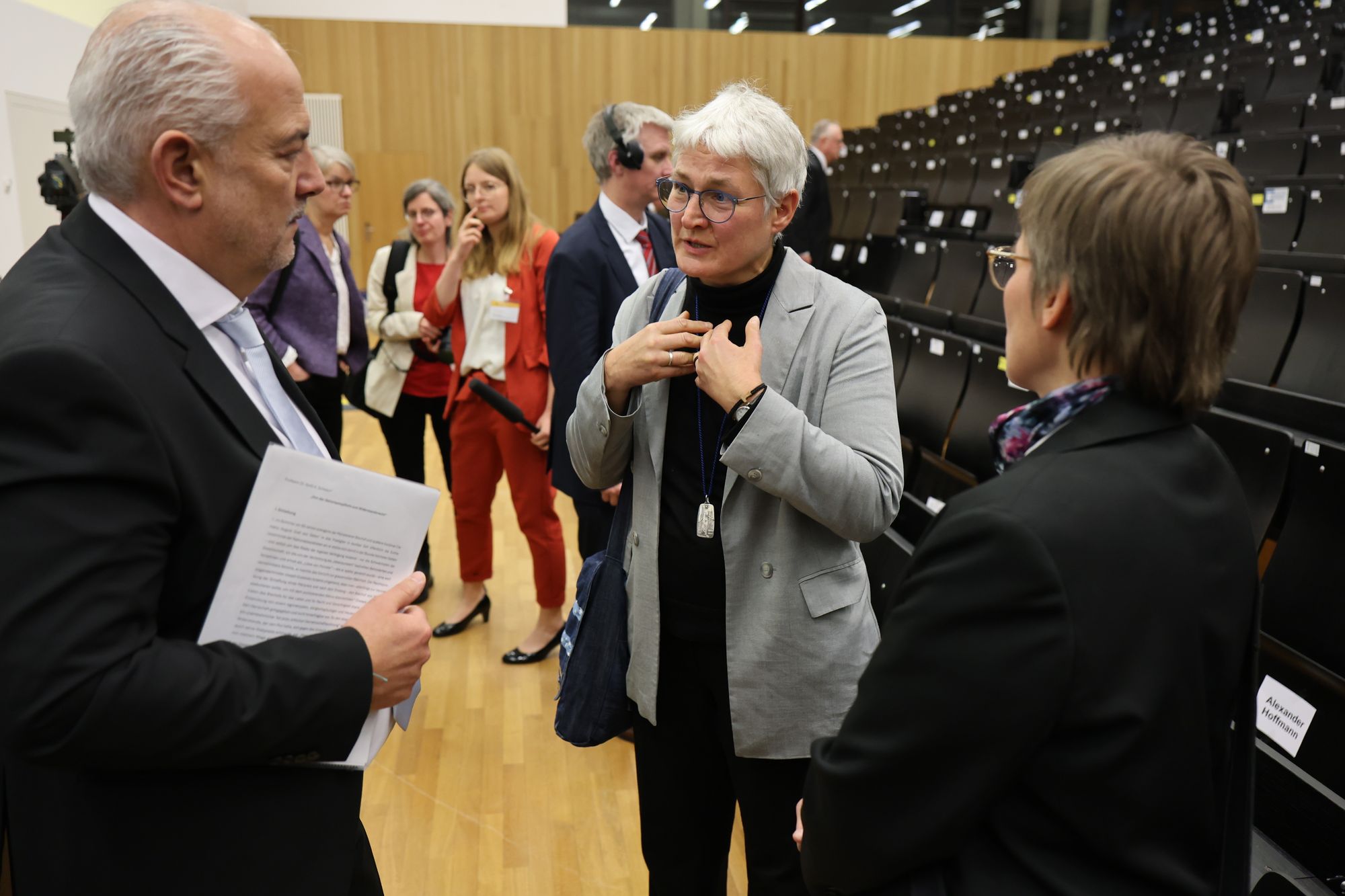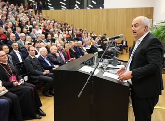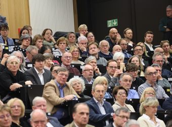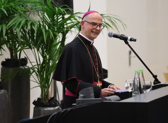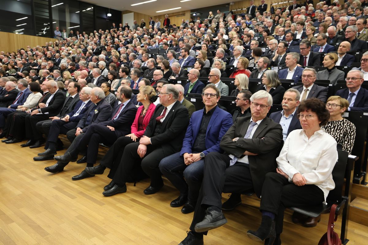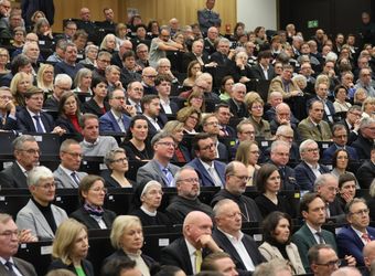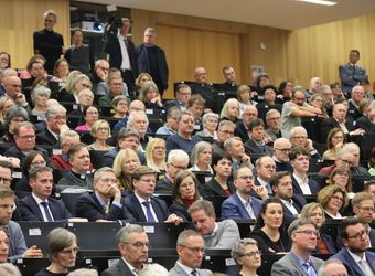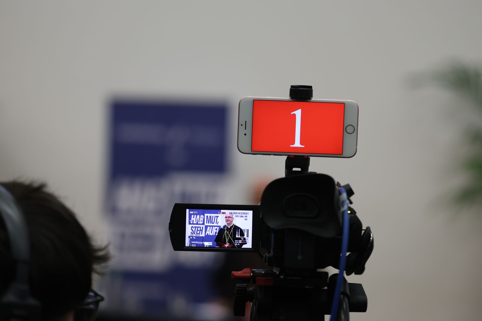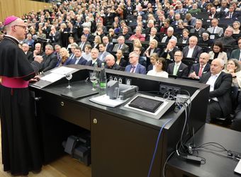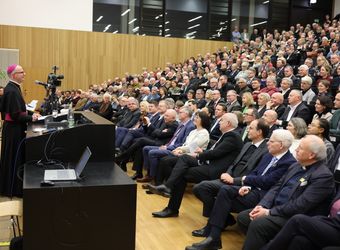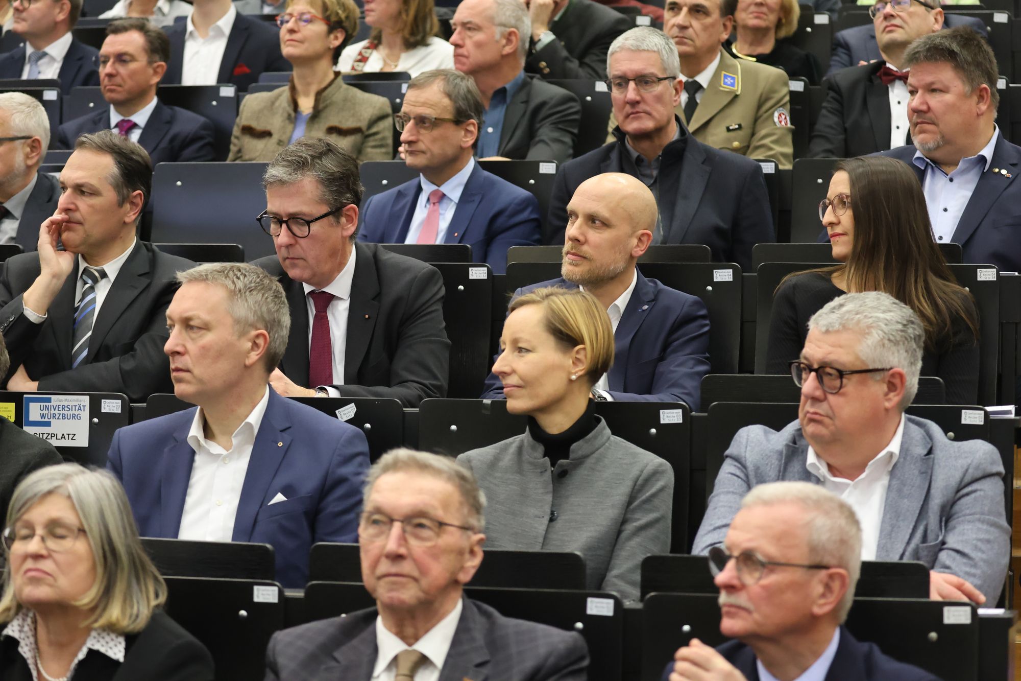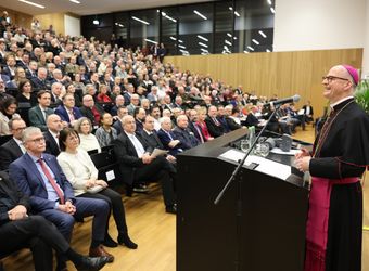 Dem Publikum gab der Bischof mit Blick auf das Leitwort „Hab Mut, steh auf!“ mit auf den Weg: „Hab Mut, steh auf für den demokratischen Rechtsstaat mit seiner Rechtsordnung, in dem zu leben wir das große Privileg und Glück haben. Steh mutig auf, die geltenden Wege der Normfindung und des Aushandelns politischer Streitfragen stark zu machen. Steh mutig dafür auf, Mehrheiten zu organisieren, die helfen, Missstände in unserem Gemeinwesen abzustellen und gute Lösungen voranzubringen. Steh aber auch dann immer mutig auf, wenn es darum geht, Menschenrechtsverletzungen als solche zu benennen und Menschen in ihrer Würde zu schützen.“