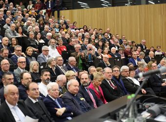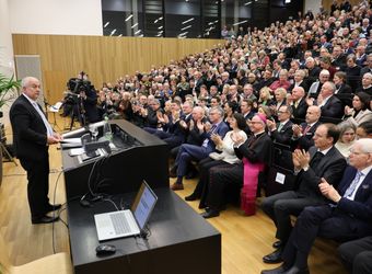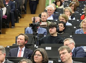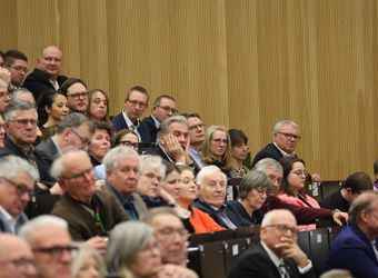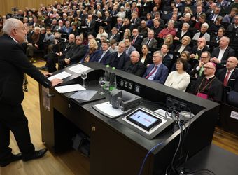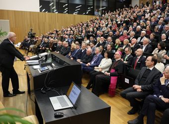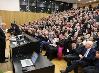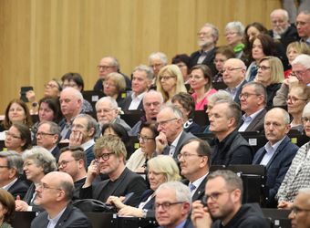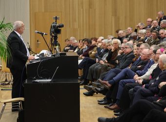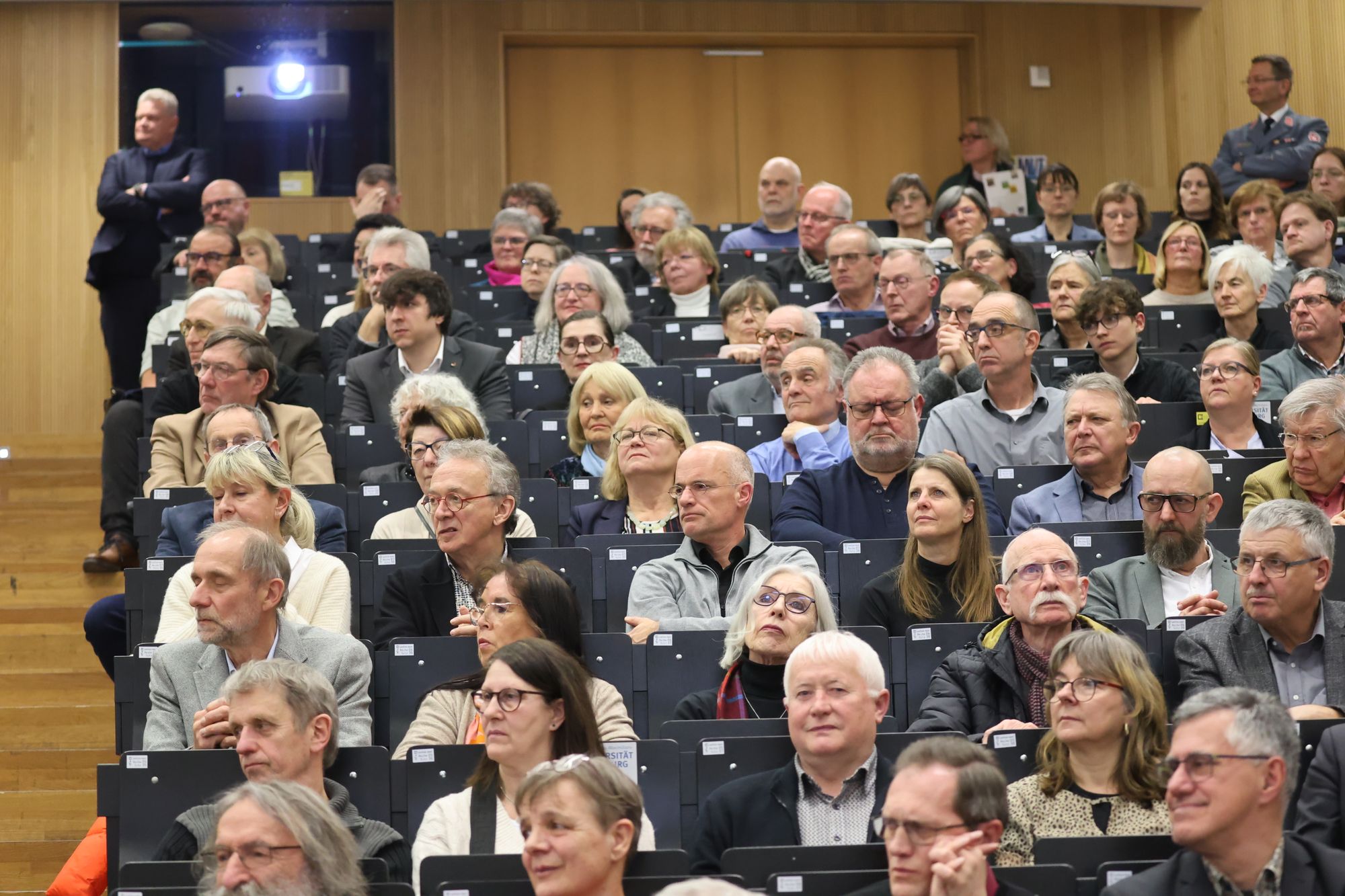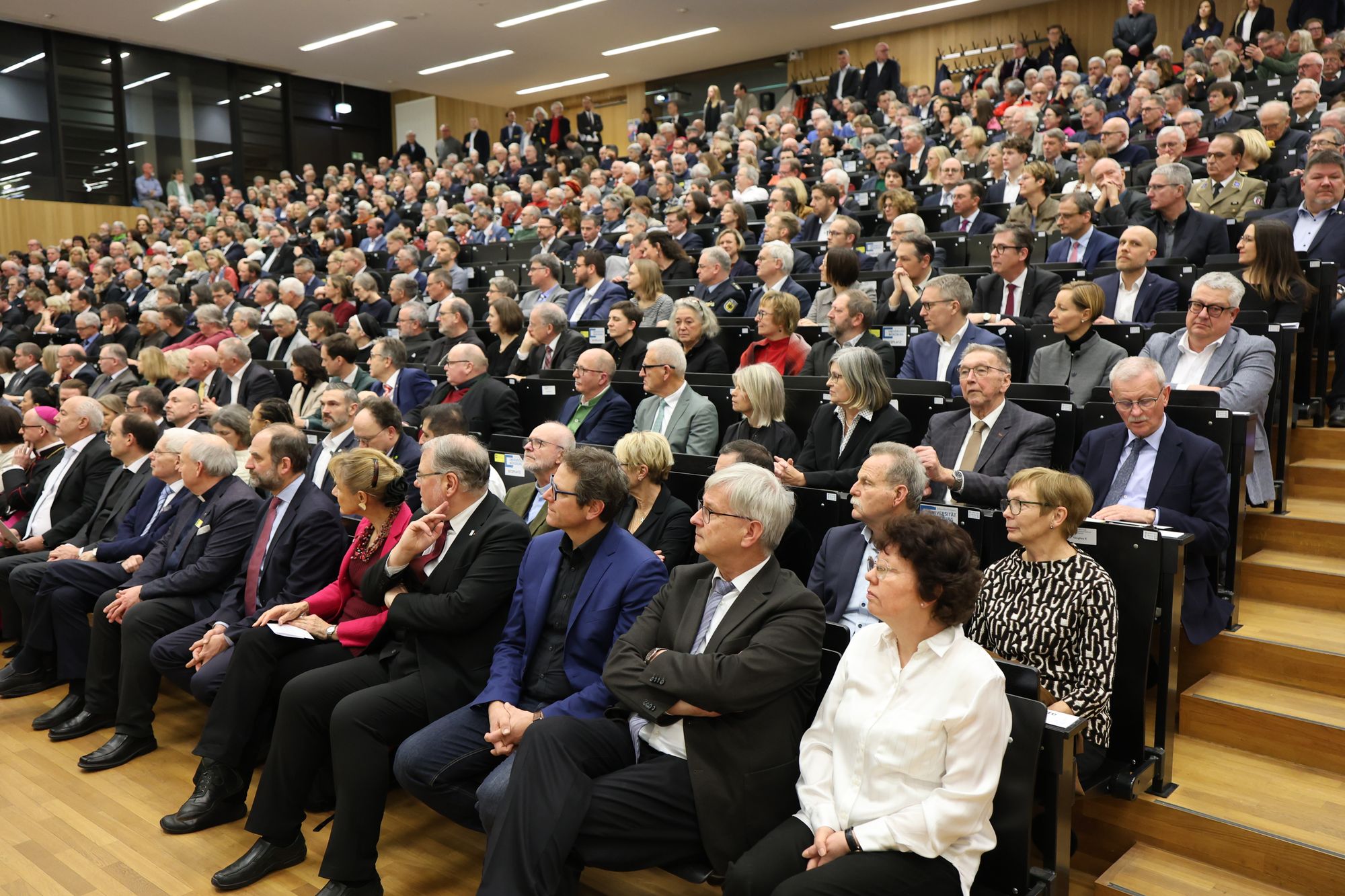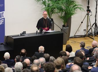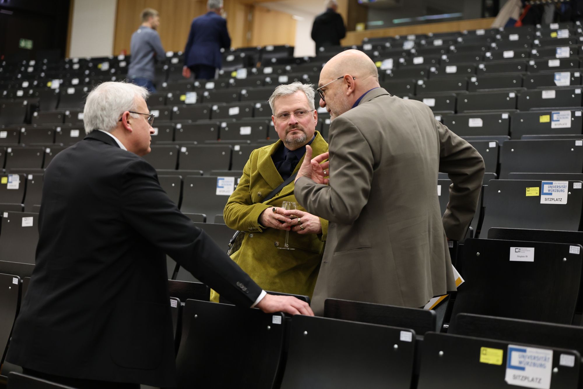 Würzburg (POW) Ziviler Ungehorsam hat viele Gesichter: Der containernde Jesuitenpater und die Kirchengemeinde, die Kirchenasyl gewährt, nehmen ihn ebenso für sich in Anspruch wie Klimaaktivisten, die Kunstwerke mit Suppe beschmieren. „Hab Mut, steh auf!“, lautet das Jahresmotto des Bistums und das Leitwort für den 104. Deutschen Katholikentag in Würzburg. Doch wann darf der Einzelne den Gehorsam gegenüber dem für alle geltenden Gesetz aufkündigen? Nach Ansicht von Dr. Kyrill-Alexander Schwarz, Professor für Öffentliches Recht an der Julius-Maximilians-Universität Würzburg, ist Rechtsungehorsam als Mittel der politischen Auseinandersetzung in einer Demokratie ein Widerspruch in sich. „Ziviler Ungehorsam ist die Negation des demokratischen Rechtsstaats und beraubt ihn seiner Existenzgrundlage“, sagte er in seinem Vortrag „Von der Gehorsamspflicht zum Widerstandsrecht“ beim Diözesanempfang am Montagabend, 19. Januar, in der Universität am Würzburger Hubland.