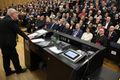 „Wer heute wohlmeinend mit Alleinvertretungsanspruch für die angebliche Richtigkeit seiner Auffassung den offenen Rechtsbruch fordert, anderen seinen Willen aufzwingt und damit den demokratischen Grundkonsens aufkündigt, der steht nicht auf und zeigt keinen Mut“, sagte der Referent. Vielmehr habe derjenige Mut, der „bei Verletzungen der Menschenwürde aufsteht und durch sein Verhalten, durch sein staatsbürgerliches Engagement mit legalen Mitteln dafür sorgt, dass die gegenwärtig zu beobachtenden, schleichenden Aushöhlungen und Unterwanderungen des demokratischen Verfassungsstaates unterbleiben“.