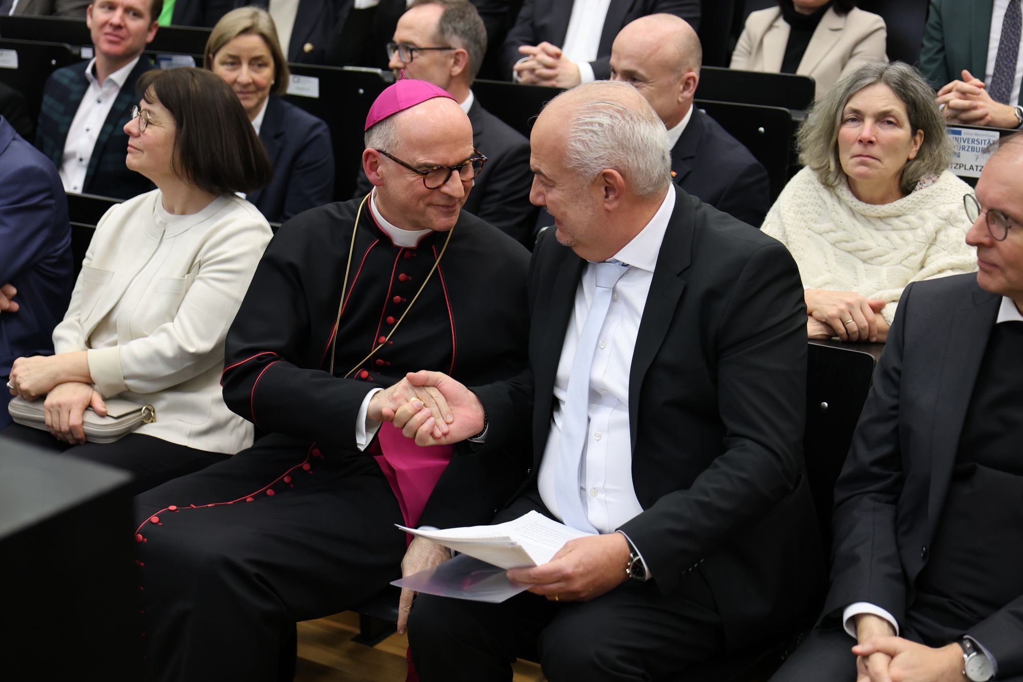 Bischof Jung dankte für den „klaren und pointierten Vortrag zu einem hochaktuellen und komplexen Thema“. Auch im Bistum Würzburg habe es einige prominente Fälle von Kirchenasyl gegeben. „Wir wissen um die Spannung, in der wir als Kirche stehen“, sagte er und betonte: „Ich kann sagen, dass wir in allen Fällen immer gütliche Lösungen auch im Zusammenspiel mit der Politik gefunden haben, auch dank unseres Katholischen Büros in Bayern. Wir konnten in jedem Fall die Auffassung vertreten, dass das geltende Recht noch nicht vollends ausgeschöpft ist, und dass wir über die Härtefallkommissionen versucht haben, Menschen zu helfen, die Furchtbares in ihrem Leben erlitten haben. Uns allen ist sehr bewusst, dass wir dieses Privileg des Gesetzgebers nicht missbrauchen dürfen.“