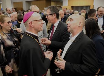 Organisiert wurde der Diözesanempfang von der Domschule Würzburg und dem Caritasverband für die Diözese Würzburg. Viel Applaus gab es für die Akkordeonisten Vladimir Stupnikov und Blaž Fir, Studenten an der Musikhochschule Würzburg, die den Abend mit Ausschnitten aus der „Suite gothique, op. 25“ von Léon Boëllmann gestalteten.