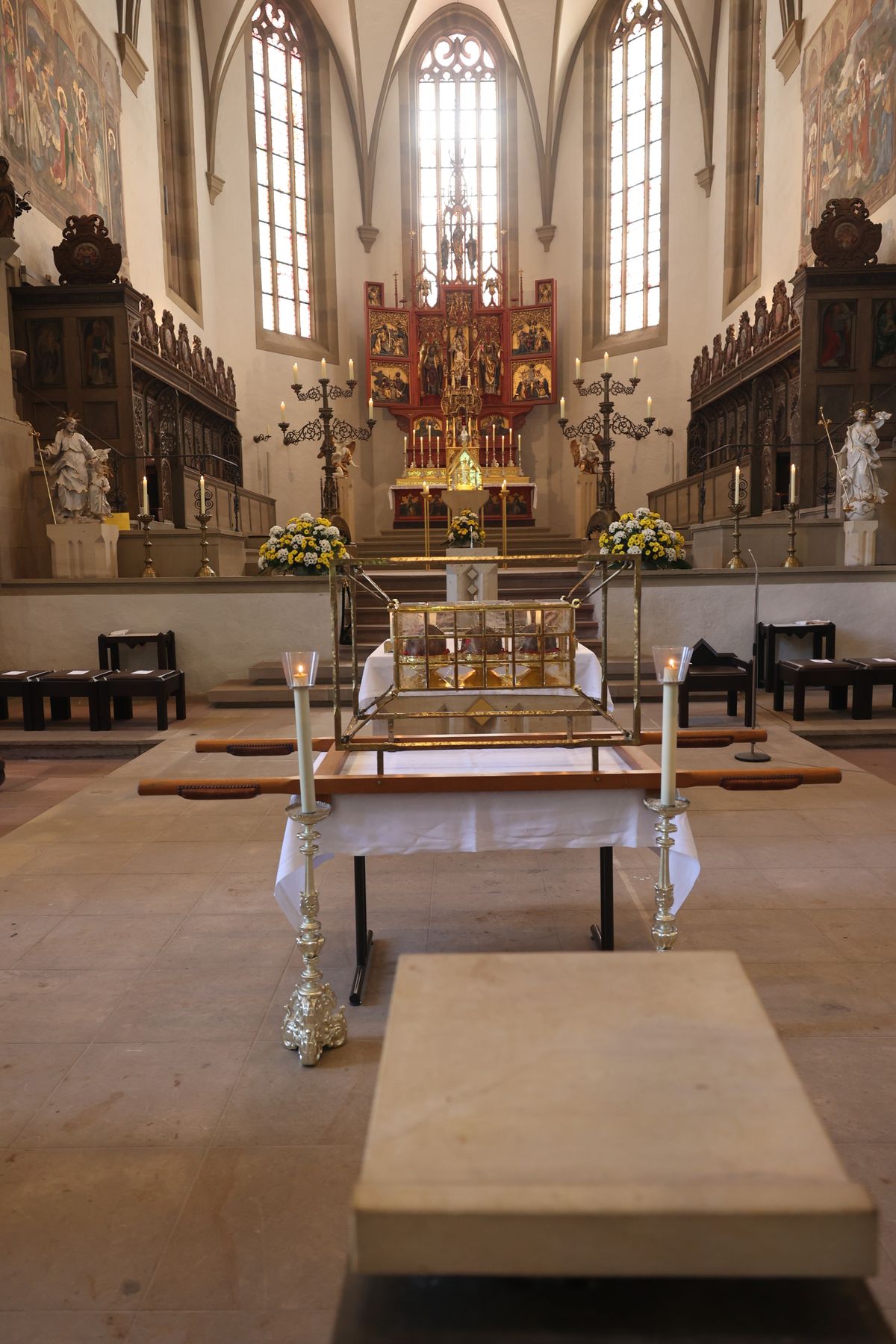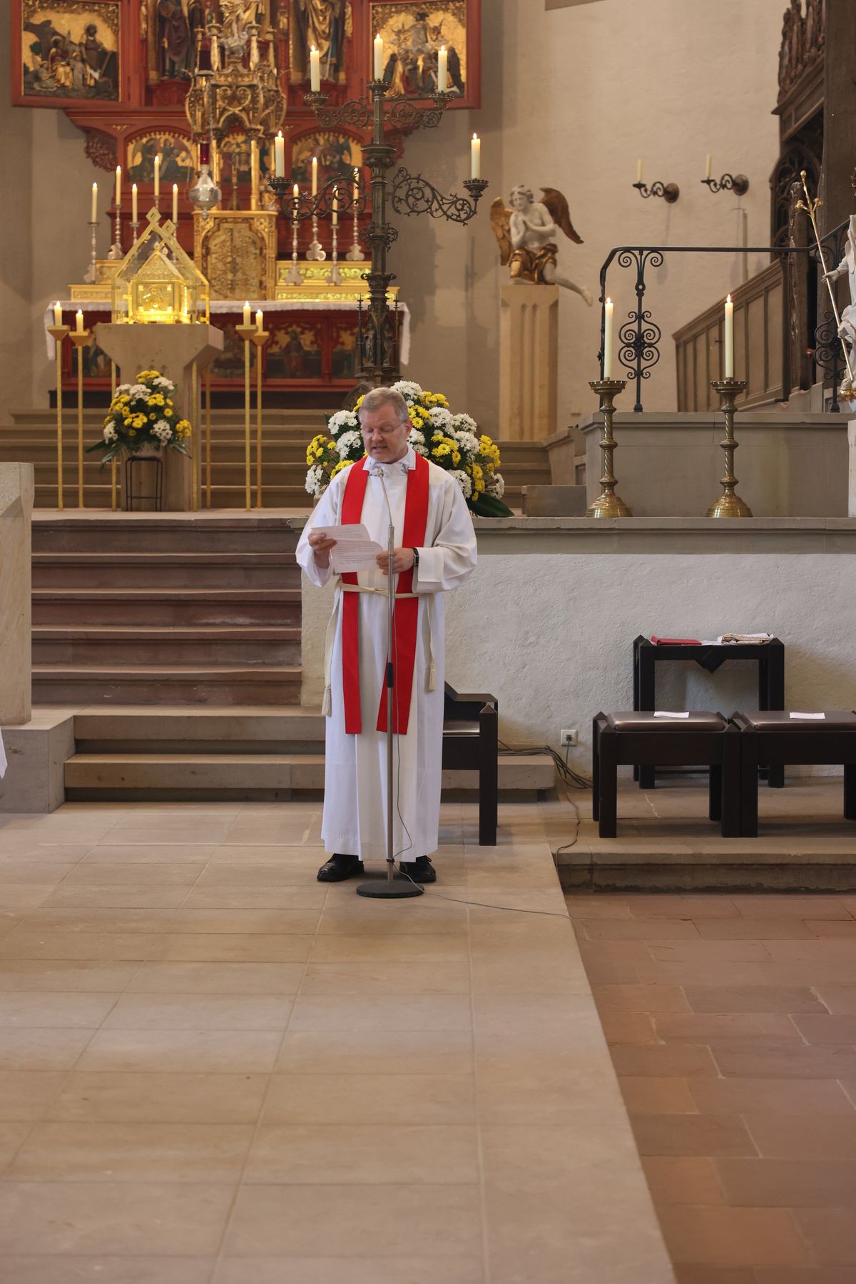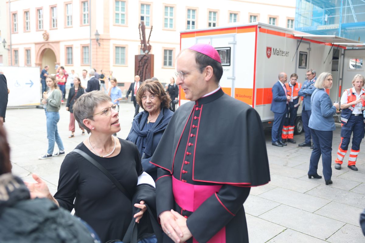 Viele Gläubige ließen sich nach dem Gottesdienst einzeln unter Auflegung von Reliquien der Frankenapostel segnen. Für die musikalische Gestaltung des Gottesdiensts im Dom sorgten Domorganist Professor Stefan Schmidt sowie der Domchor, die Domsingknaben und zwei Bläserensembles unter der Leitung von Domkapellmeister Alexander Rüth und Domkantor Julian Beutmiller, unter anderem mit der „Missa octo vocum“ von Hans Leo Hassler sowie Werken von Michael Praetorius und Felix Mendelssohn Bartholdy. Bei der Prozession spielte das Symphonische Blasorchester Kürnach. Ein Empfang auf dem Kiliansplatz schloss sich an den Gottesdienst an.