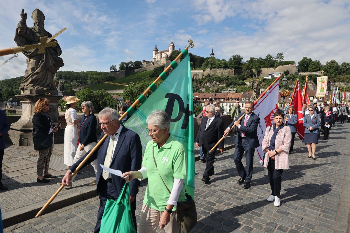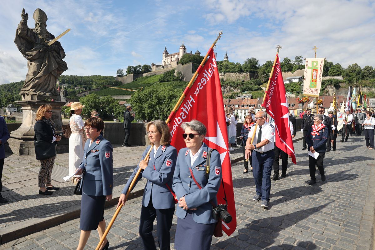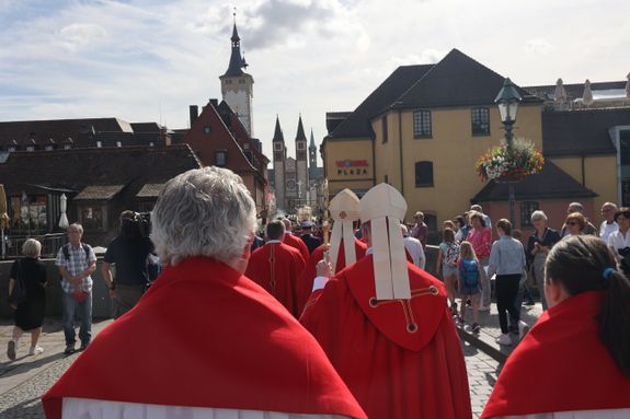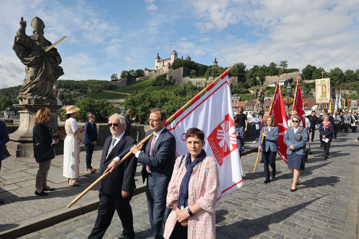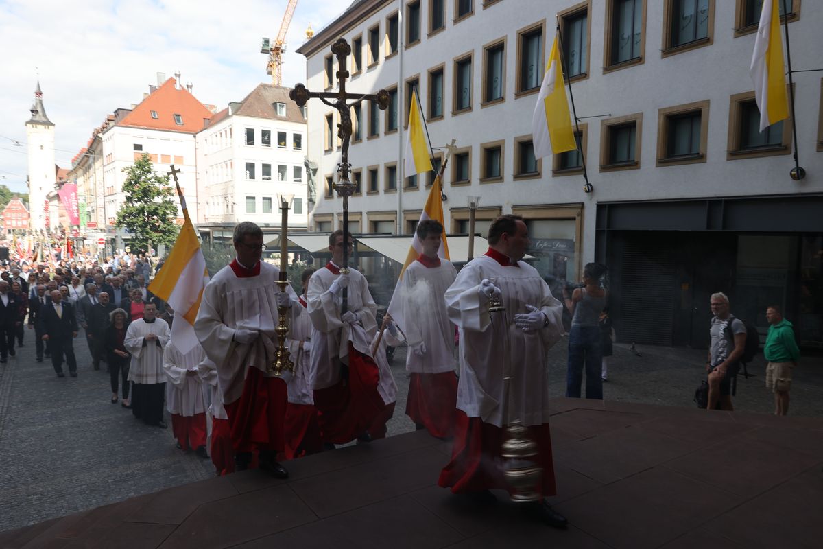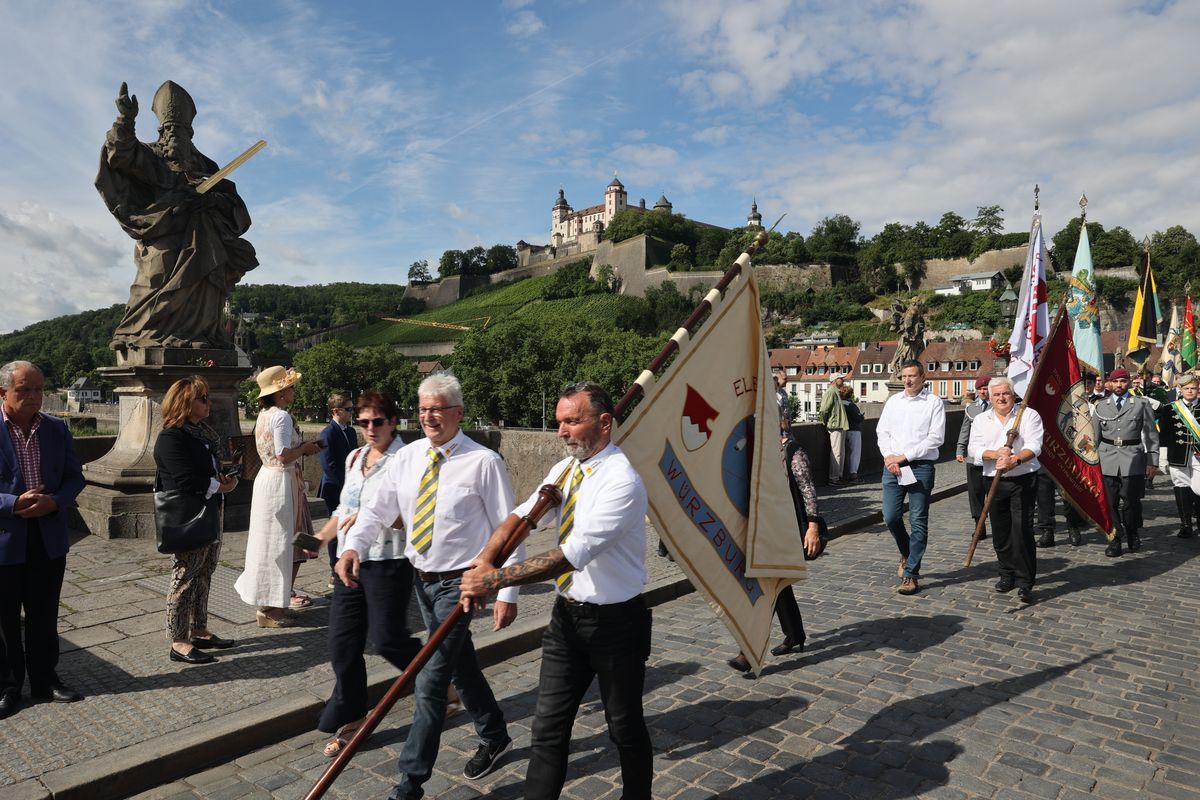 Mit einer Reliquienprozession von Sankt Burkard über die Alte Mainbrücke zum Kiliansdom und einem Pontifikalgottesdienst ist am Sonntag, 7. Juli, die Kiliani-Wallfahrtswoche 2024 eröffnet worden.