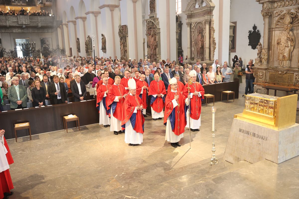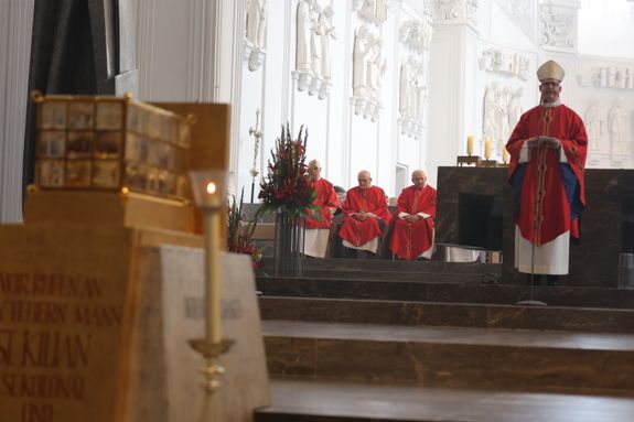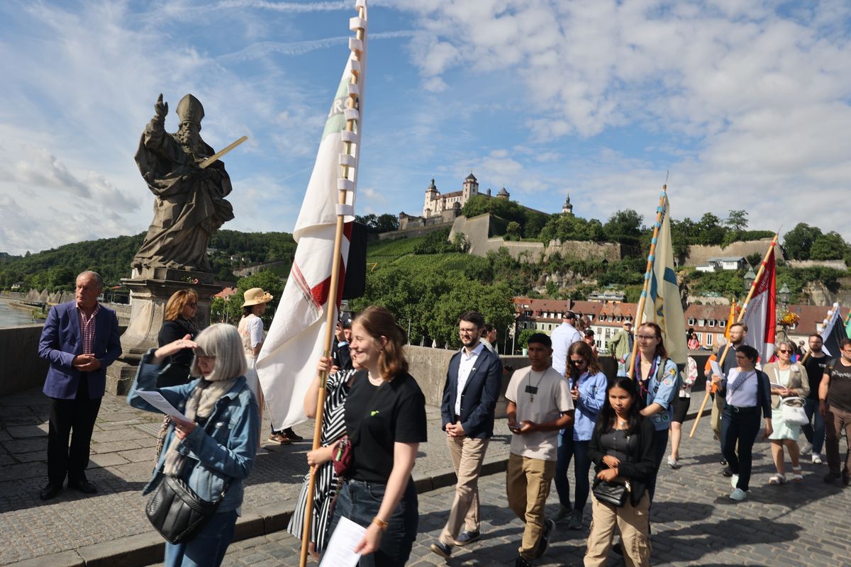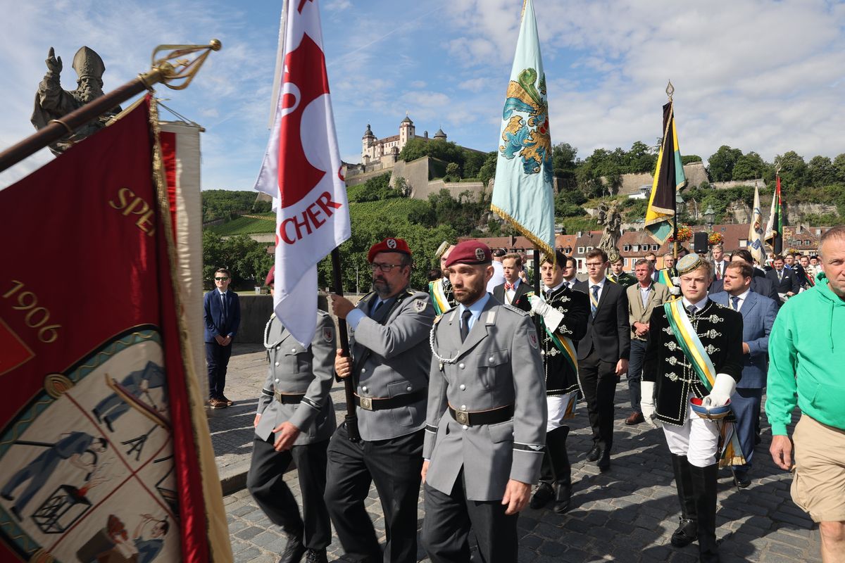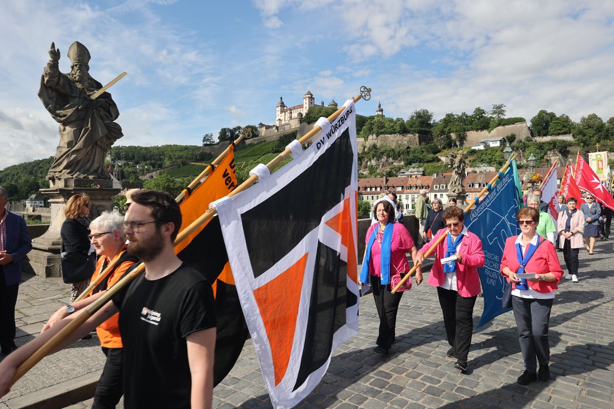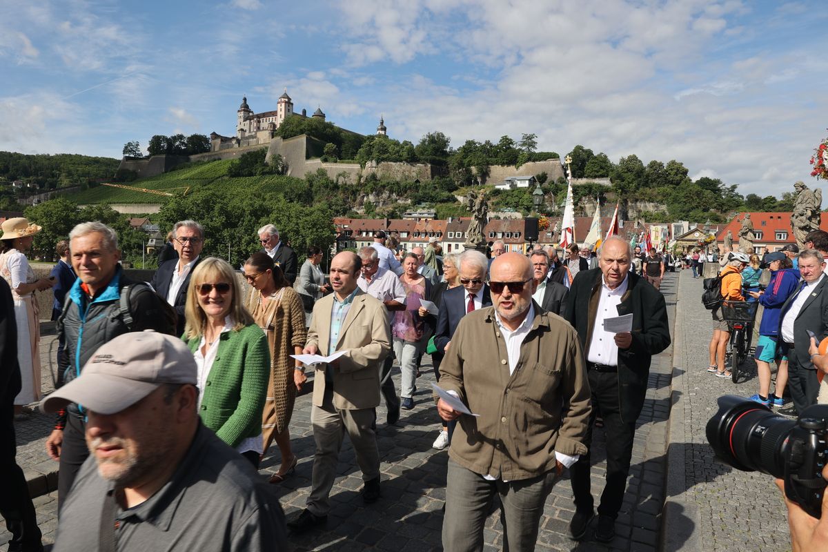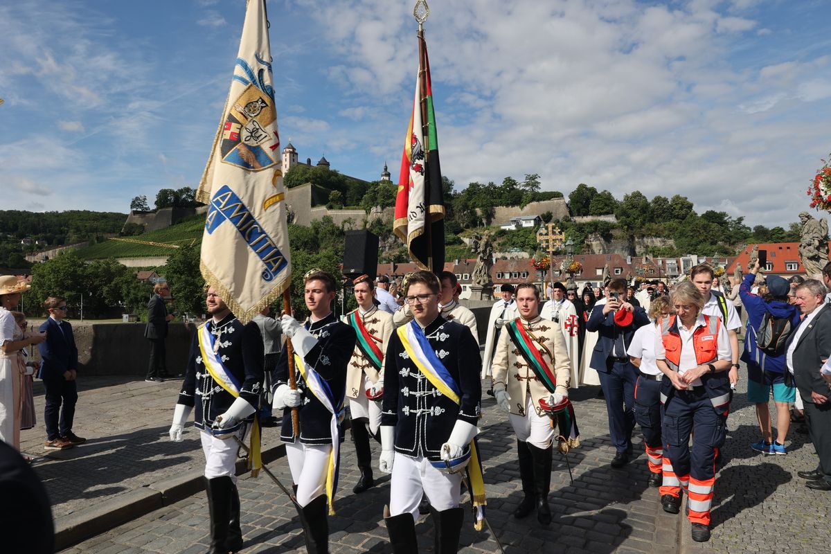 Mit einer Reliquienprozession von Sankt Burkard über die Alte Mainbrücke zum Kiliansdom und einem Pontifikalgottesdienst ist am Sonntag, 7. Juli, die Kiliani-Wallfahrtswoche 2024 eröffnet worden.