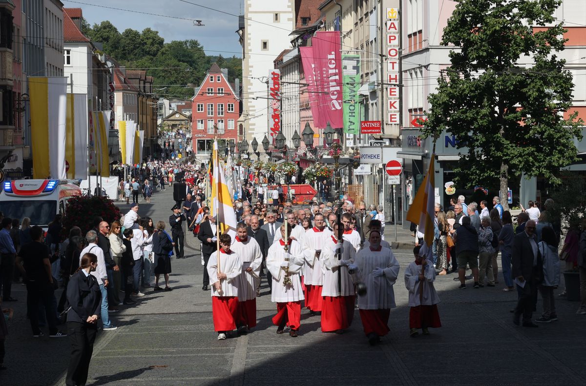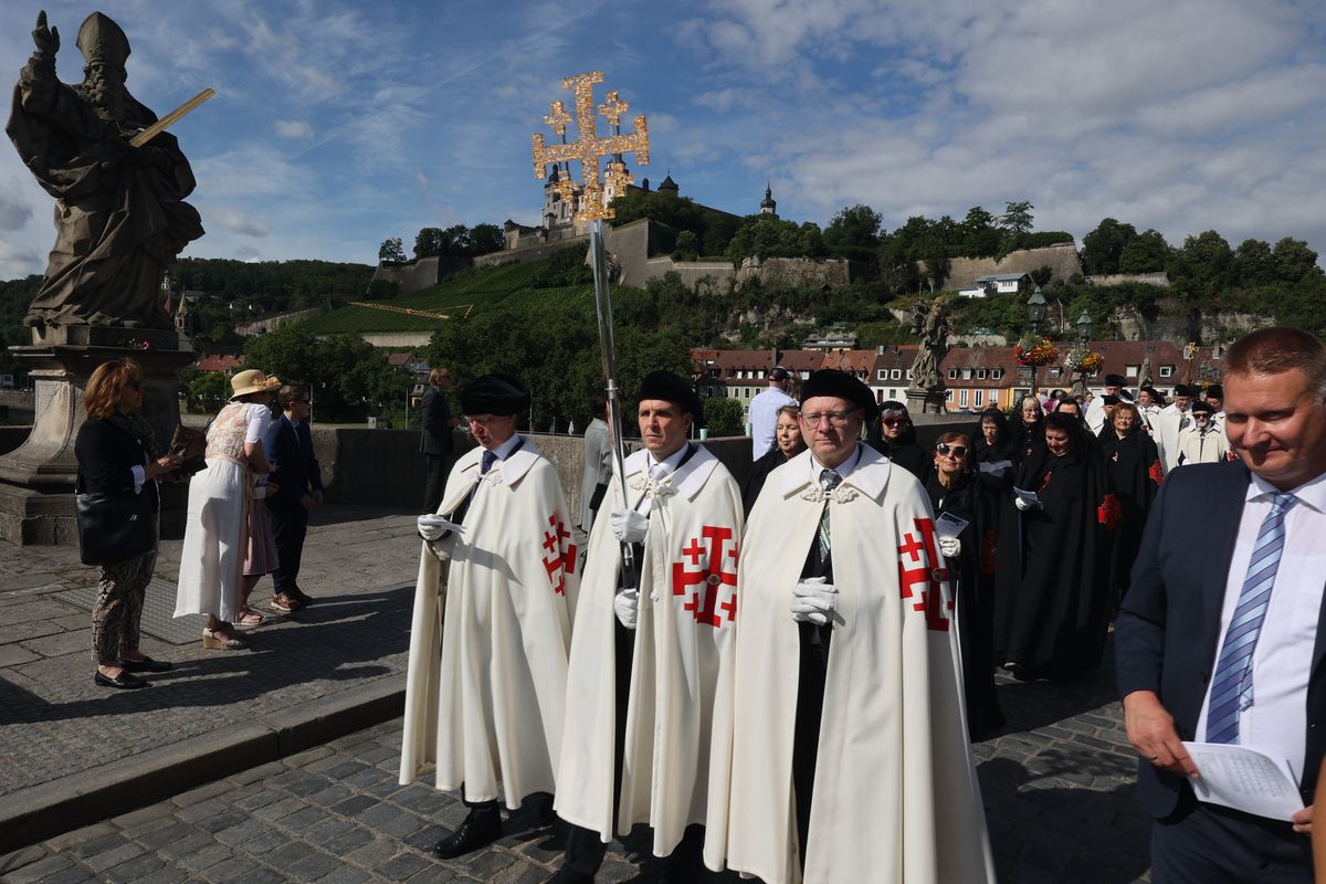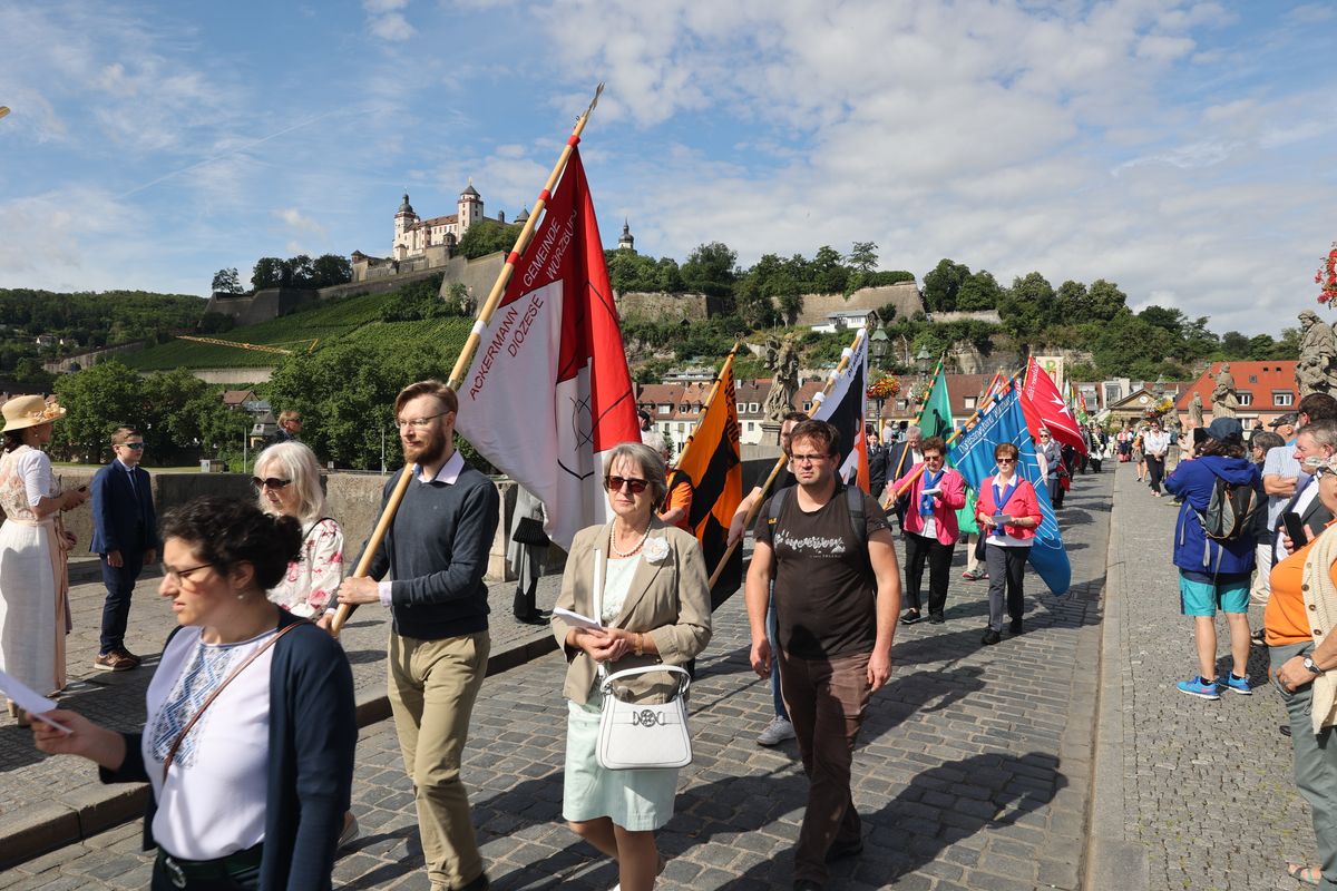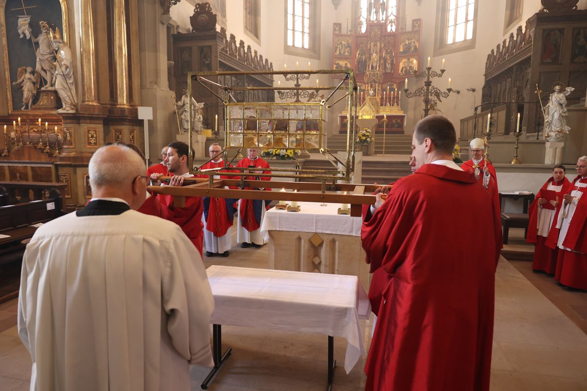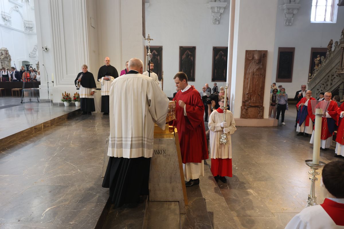 Mit einer Reliquienprozession von Sankt Burkard über die Alte Mainbrücke zum Kiliansdom und einem Pontifikalgottesdienst ist am Sonntag, 7. Juli, die Kiliani-Wallfahrtswoche 2024 eröffnet worden.