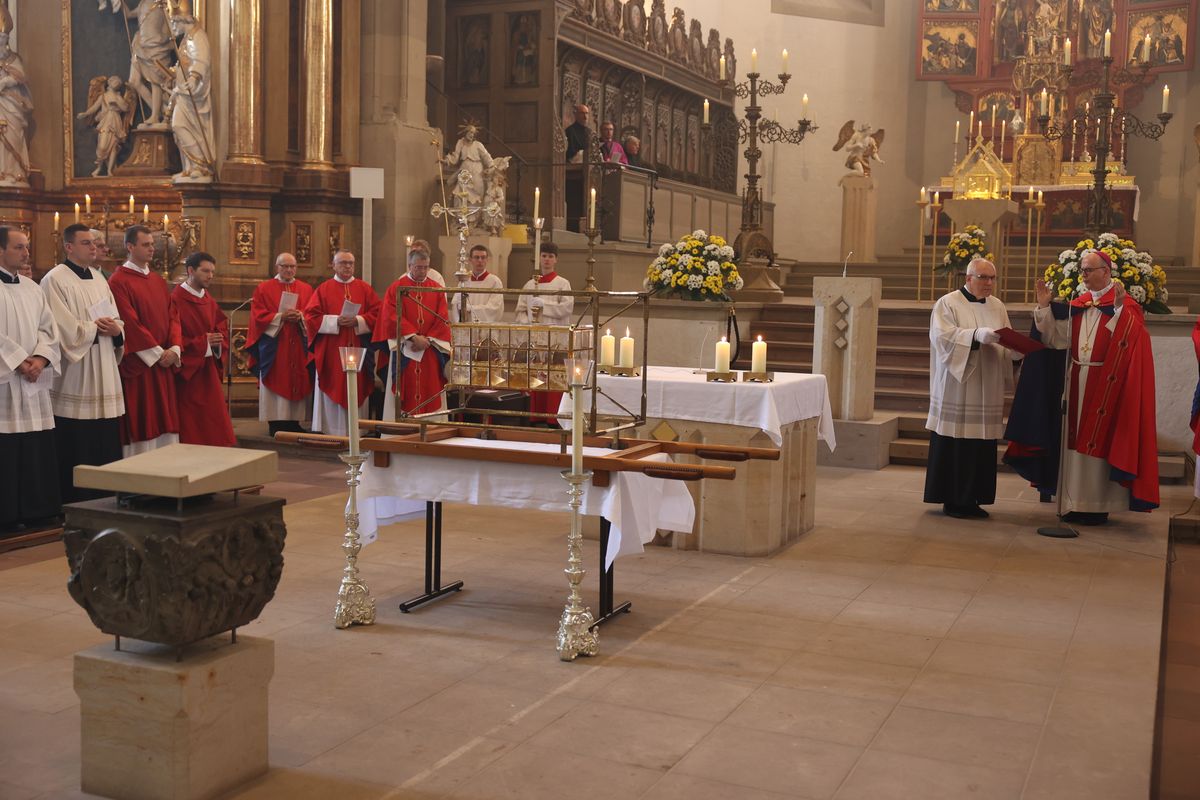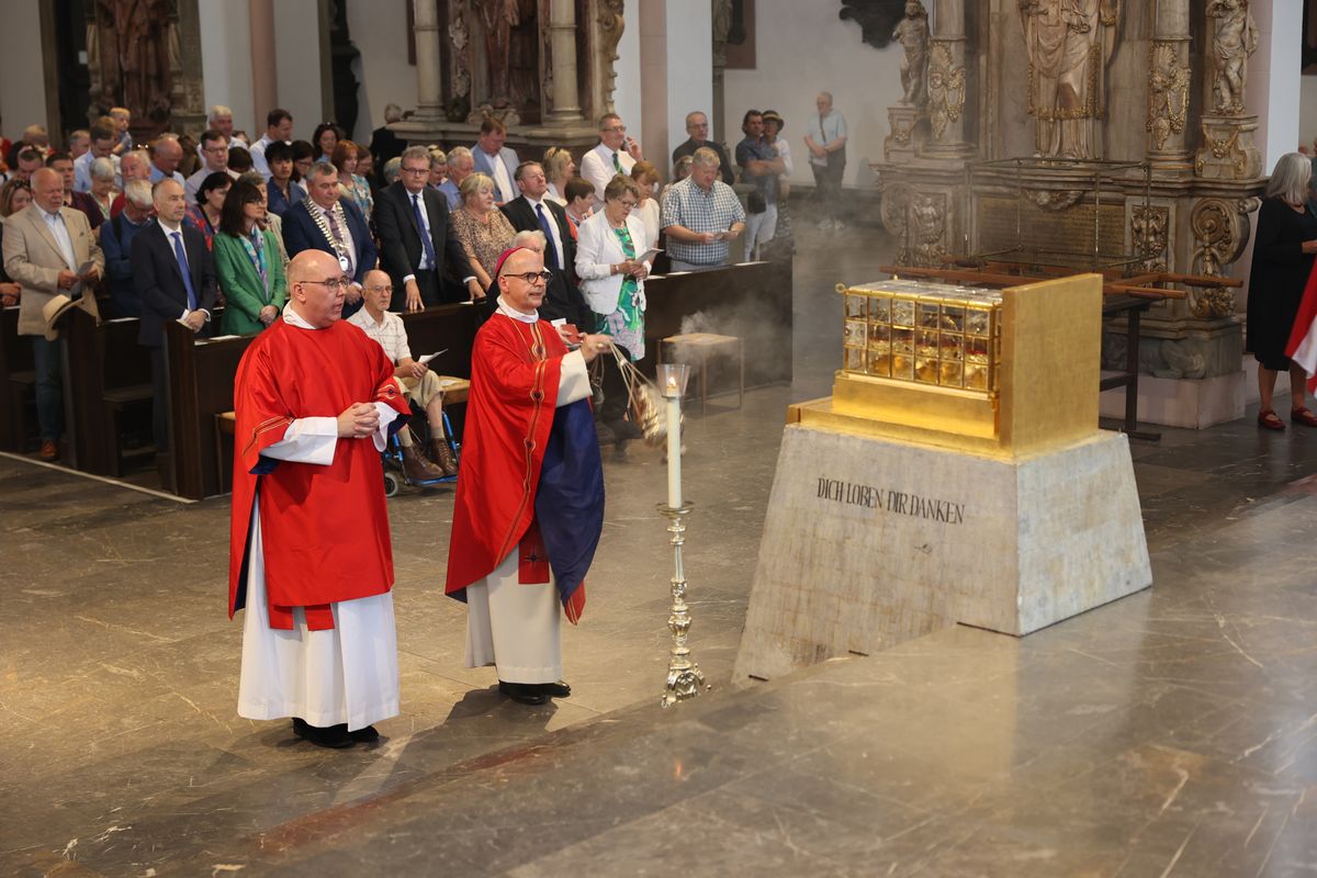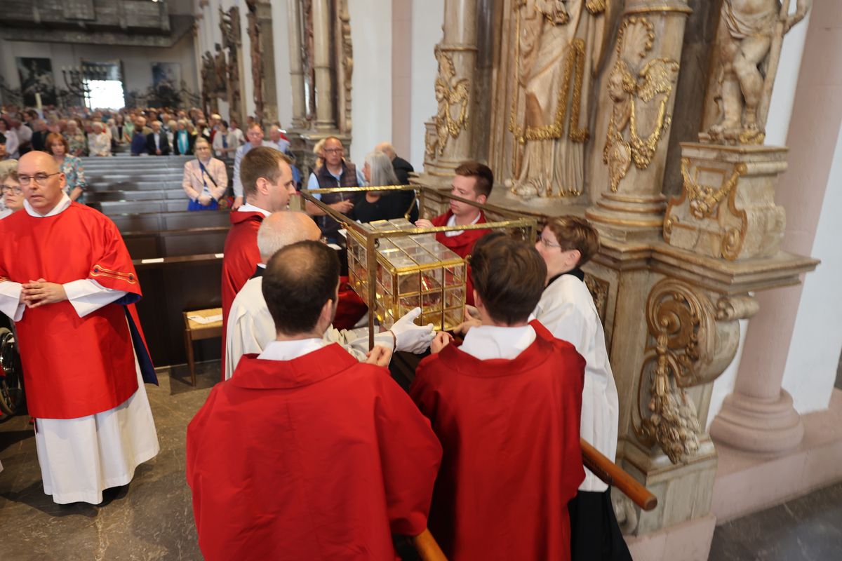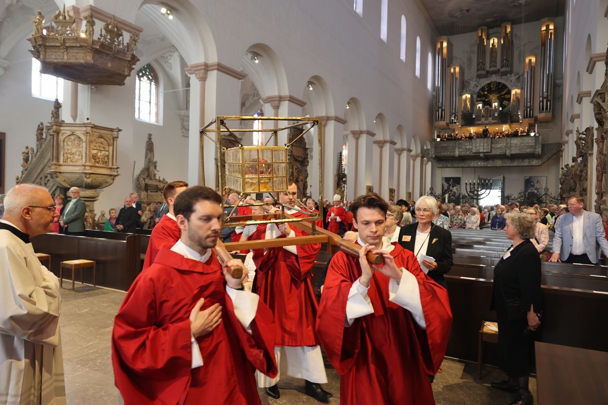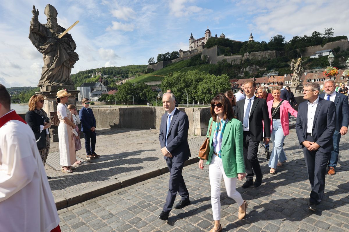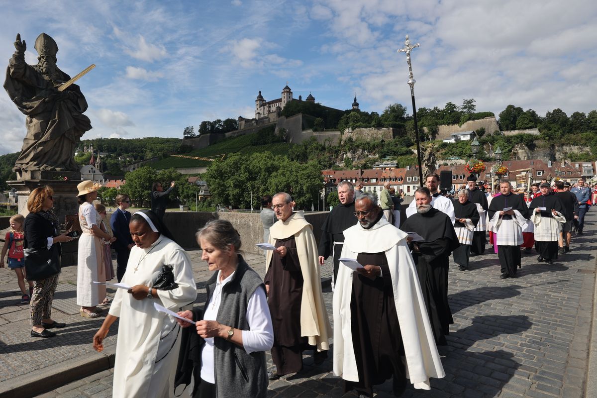 Mit einer Reliquienprozession von Sankt Burkard über die Alte Mainbrücke zum Kiliansdom und einem Pontifikalgottesdienst ist am Sonntag, 7. Juli, die Kiliani-Wallfahrtswoche 2024 eröffnet worden.