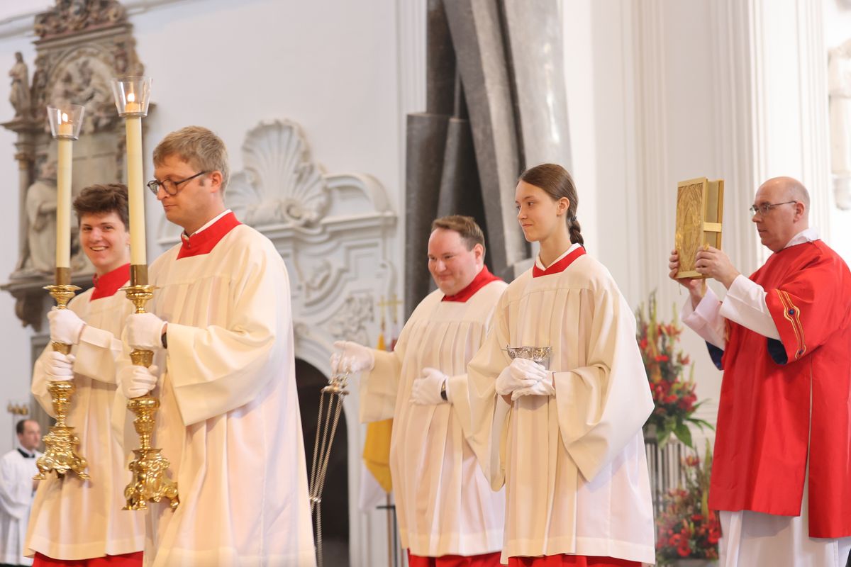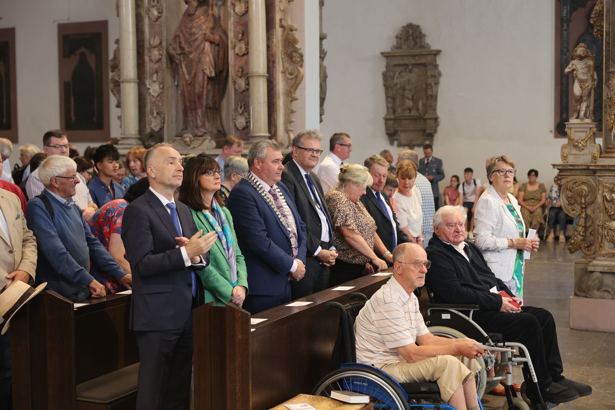 Kiliani-Wallfahrtswoche 2024 feierlich eröffnet – Delegation aus Irland feiert mit – Rund 1100 Gläubige beim Pontifikalgottesdienst – Reliquienprozession von Sankt Burkard zum Kiliansdom – Offizielle Einladung zur Irlandwallfahrt im Oktober
