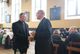 Universitätspräsident Professor Michael Mullaney (links) begrüßt im Speisesaal Bischof Dr. Franz Jung.