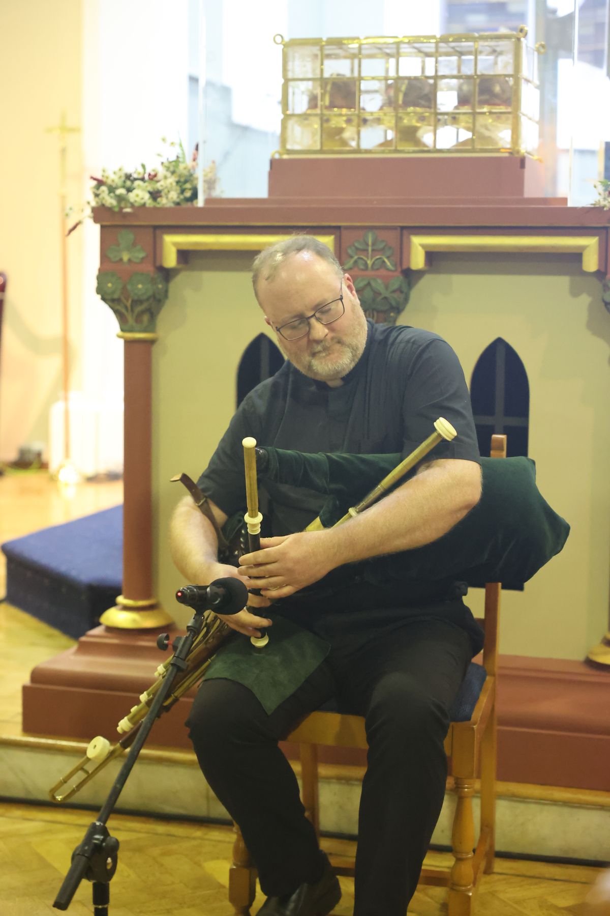 Ein musikalisches Glanzlicht neben der Uraufführung des neu auf Textbasis des von Father Ronan Drury verfassten Kiliansgebets komponierten Kilianslieds war das Spiel von Father Darragh Connolly, Verantwortlicher für die Öffentlichkeitsarbeit des Bistums Kilmore, auf den Uilieann Pipes. Dieser irische Dudelsack wird nicht mit dem Mund, sondern über einen am Ellenbogen befestigten Blasebalg mit Luft versorgt und erlaubt zudem ein weitaus vielfältigeres und dynamischeres Spielen als sein schottischer Verwandter. Allen Musizierenden zollte das Publikum mit den Bischöfen Dr. Franz Jung und Martin Hayes, Bischof von Kilmore, an der Spitze langanhaltenden Applaus.