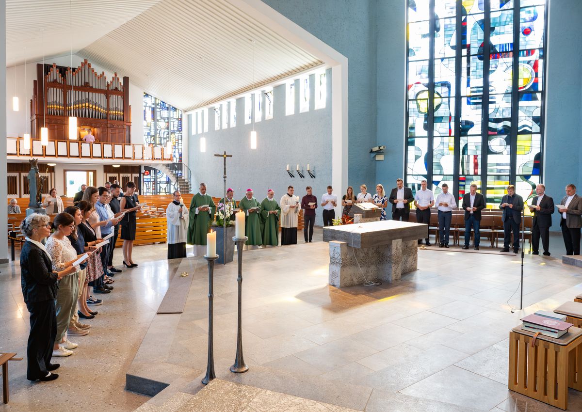 „Veränderung – dieses Wort steht auch über der Erarbeitung und Etablierung einer kooperativen Berufseinführung für die verschiedenen pastoralen Berufsgruppen im Bereich der Bamberger Kirchenprovinz“, betonte der Erzbischof. In seiner Predigt hob er weiter hervor, dass die kooperative Berufseinführung ein wichtiger und richtiger Schritt für die Herausforderungen von Kirche in der heutigen Zeit sei. Zwar angestoßen durch personelle und finanzielle Not, könne dieser Schritt auch ein Impuls sein, sich tiefer mit der Frage zu beschäftigen, was der Kern aller Tätigkeiten als Kirche ist, führte der Bamberger Erzbischof aus. „Was willst du, Herr, dass wir tun sollen? Das ist die synodale Frage schlechthin. Darauf finden wir nur eine Antwort im Hören aufeinander und im miteinander Hören auf das, was Gott uns heute sagen will.“ Insofern sei die kooperative Berufseinführung keine ungeliebte Notlösung, aber auch nicht aus blanker Freude heraus entstanden. „Veränderungen werden nicht ausbleiben, auch wenn sie anstrengend und unbeliebt sind.“ Aber sie seien auch ein Zeichen von Lebendigkeit. Entscheidend sei, dass bei allem immer die Kernfrage erkennbar bleibe: „Die Frage nach Gott und nach seinem Willen“.