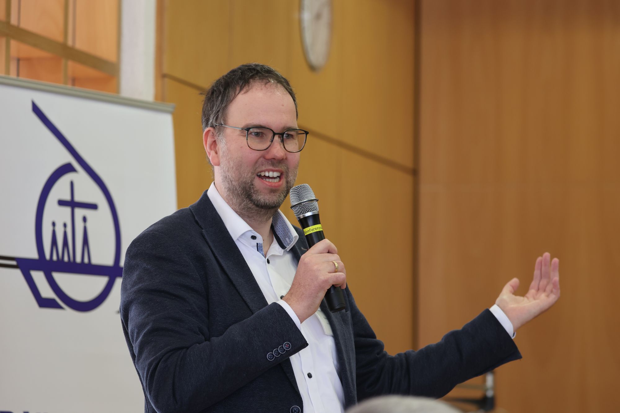 Erstmals nahm der neue Finanzdirektor, Ordinariatsrat Gerald Düchs, an einer Vollversammlung des Diözesanrats teil. Er stellte den Frauen und Männern des Diözesanrats unter anderem den Jahresabschluss der Diözese für 2023 sowie die Finanzplanung für 2025 vor. „Auch wenn in den vergangenen Jahren die Kirchensteuereinnahmen weitestgehend gleich geblieben sind, beträgt doch der Kaufkraftverlust über die vergangenen Jahre knapp 20 Prozent.“ Der Gesamtetat des Bistums für 2025 sei mit knapp 218 Millionen Euro angesetzt. Rund 178 Millionen davon seien durch die Kirchensteuer finanziert. Dass das Jahresergebnis für 2023 positiv ausgefallen sei, hänge unter anderem damit zusammen, dass dank eines inzwischen ausgeprägten Kostenbewusstseins in allen Hauptabteilungen die Ausgaben unter den geplanten Budgets geblieben seien. Auch die Ausgaben für Bauzuschüsse an Kirchenstiftungen seien geringer als geplant ausgefallen. Nach Ende des Bau-Moratoriums liefen die Baumaßnahmen erst wieder langsam an. Bereits einplant ist nach den Worten von Düchs der Baukostenbedarf für die Kirchen im Bistum nach dem Abschluss der Immobilienkategorisierung. Pro Jahr rechne seine Hauptabteilung mit Kosten von 19,5 Millionen Euro für den Erhalt der Gotteshäuser, für weitere Gebäude der Kirchenstiftungen seien pro Jahr 5,5 Millionen Euro eingeplant. Da die Maßnahmen erst wieder anliefen, umfasse das Budget für Bau im Jahr 2025 insgesamt 10,2 Millionen Euro.