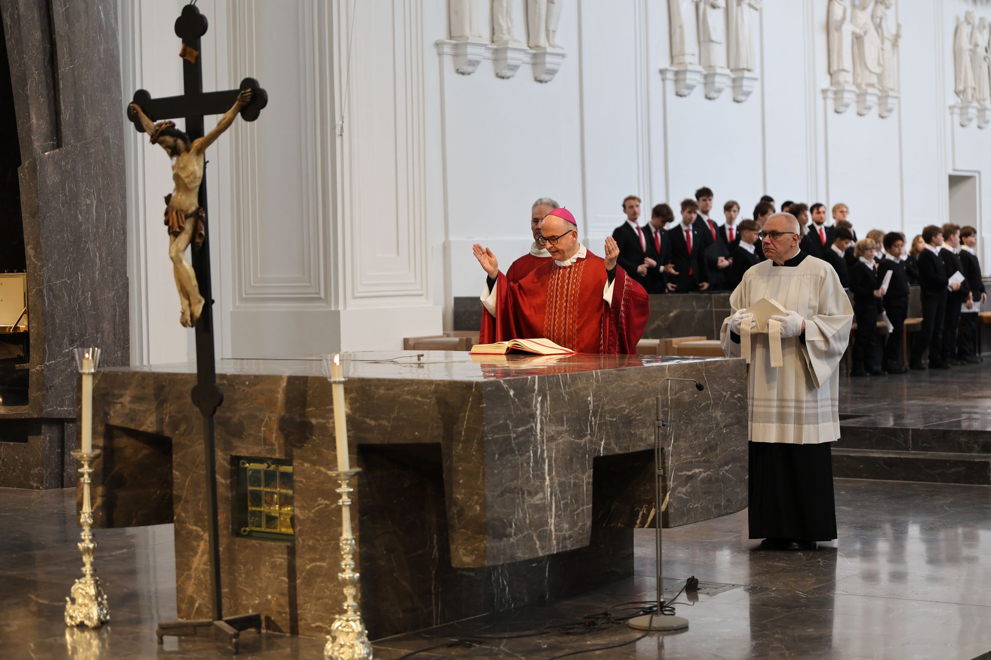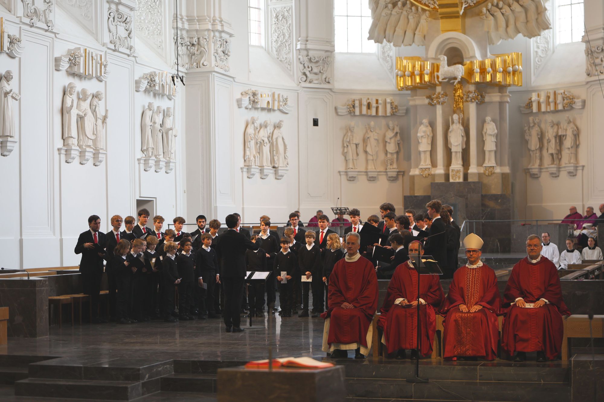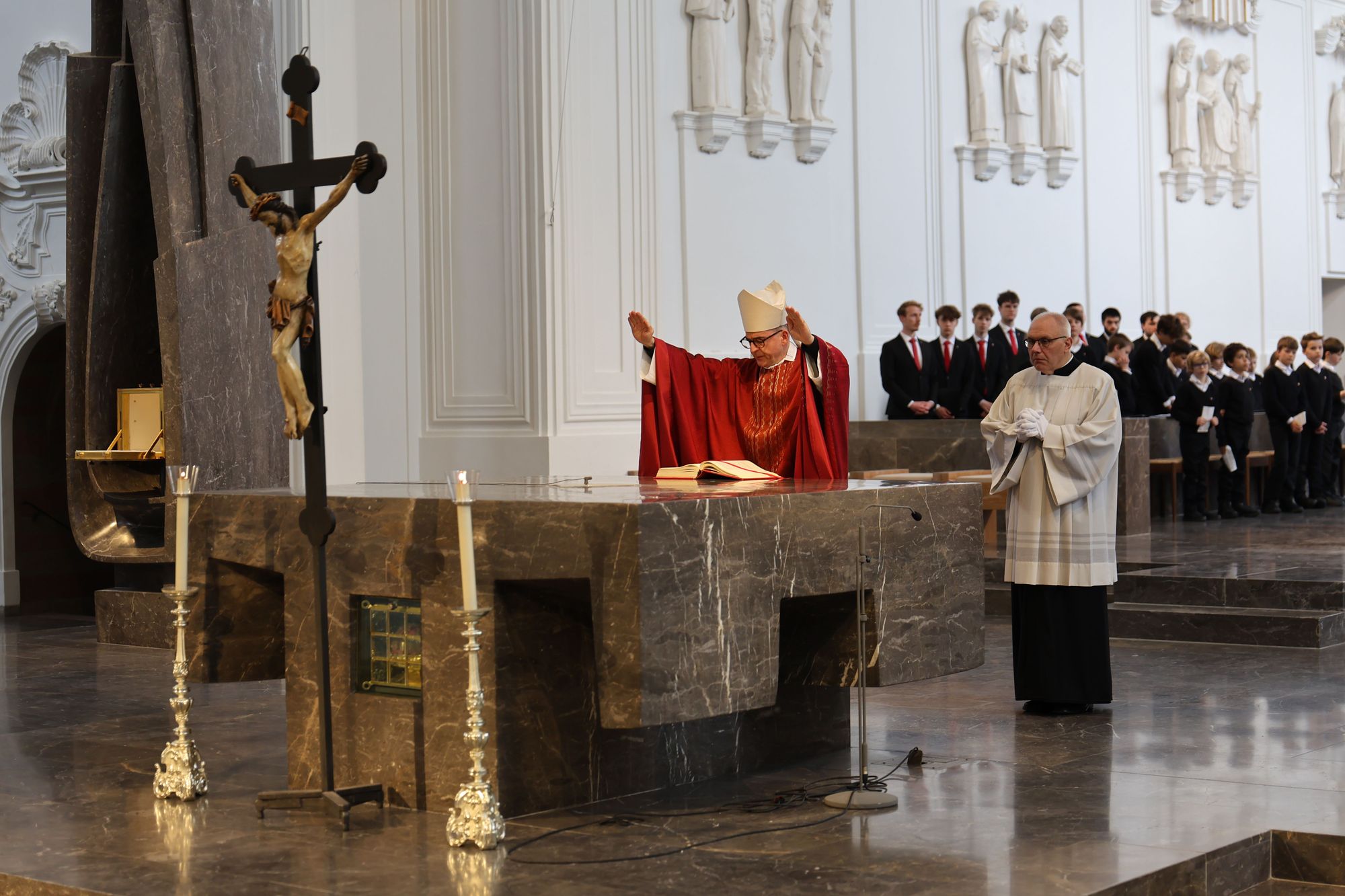 Bischof Jung feiert das Pontifikalamt am Ostersonntag, 5. April, um 10 Uhr im Kiliansdom. Es wird begleitet vom Würzburger Domchor und der Camerata Würzburg unter der Leitung von Domkapellmeister Rüth sowie Domorganist Schmidt mit „Messe in d-Moll WAB 26“ von Anton Bruckner. Solisten sind Sophie Gordeladze (Sopran), Barbara Giouseljannis (Alt), Oliver Kringel (Tenor) und Simon Tischler (Bass). Zur Pontifikalvesper um 17 Uhr mit Bischof Jung singt die Schola Cantorum unter der Leitung von Domkantor Julian Beutmiller. Der Gottesdienst am Ostermontag, 6. April, um 10 Uhr im Kiliansdom wird begleitet von der Choralschola unter der Leitung von Domkantor Beutmiller sowie Domorganist Schmidt mit der Choralmesse „Lux et origo“ und einem Choralproprium. Zelebrant ist Domdekan Dr. Jürgen Vorndran.