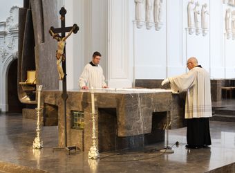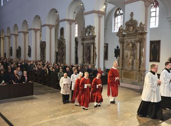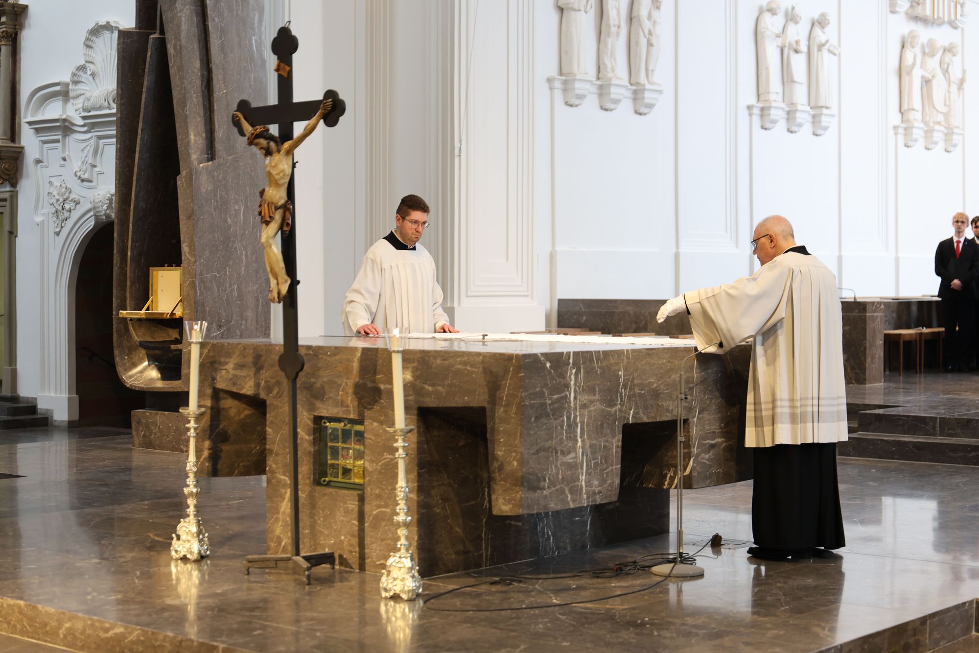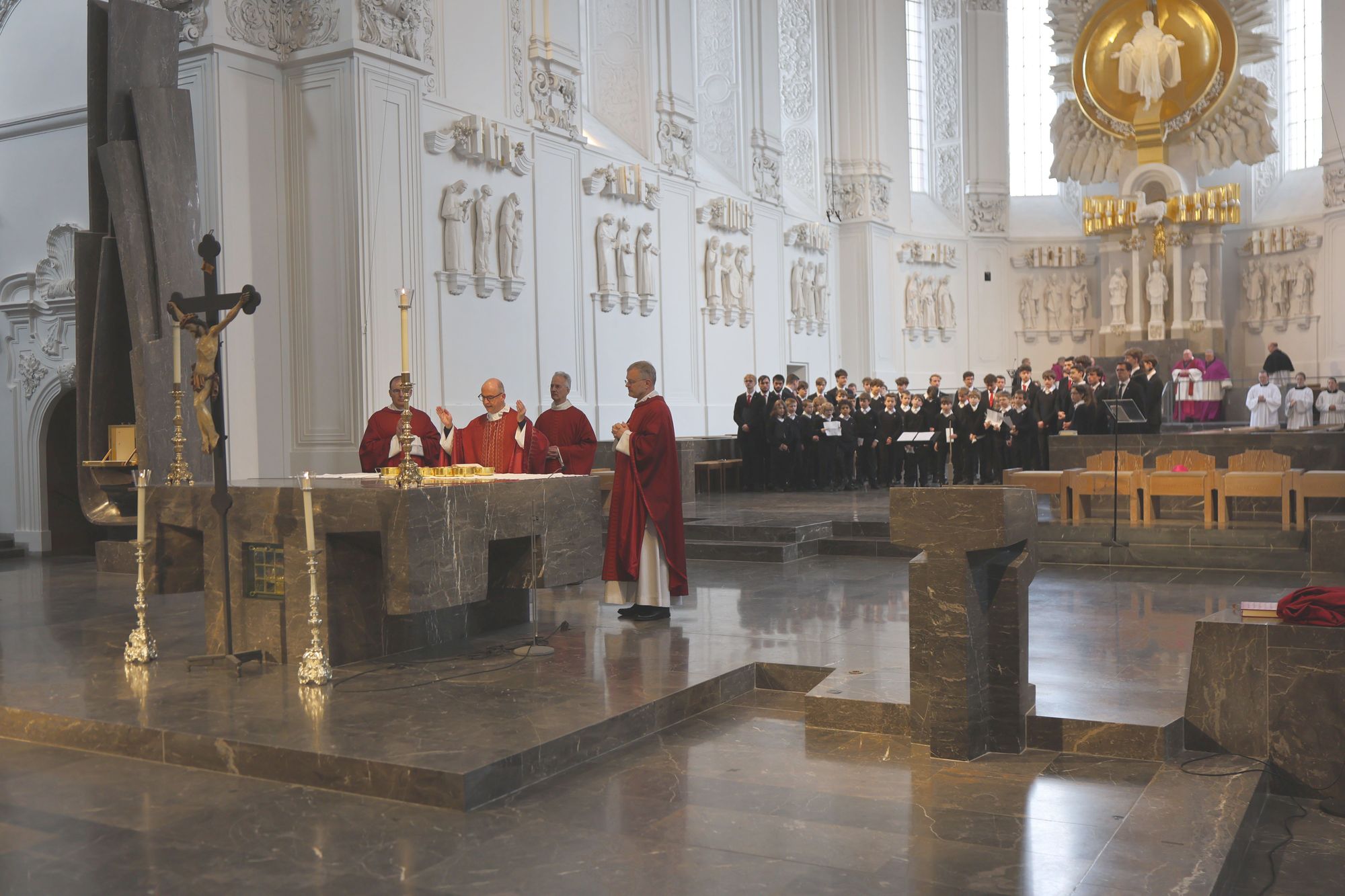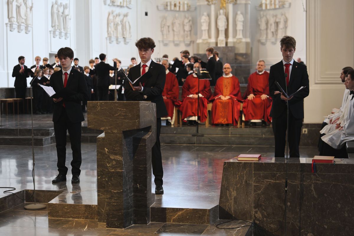Bischof Jung feiert das Pontifikalamt am Ostersonntag, 5. April, um 10 Uhr im Kiliansdom. Es wird begleitet vom Würzburger Domchor und der Camerata Würzburg unter der Leitung von Domkapellmeister Rüth sowie Domorganist Schmidt mit „Messe in d-Moll WAB 26“ von Anton Bruckner. Solisten sind Sophie Gordeladze (Sopran), Barbara Giouseljannis (Alt), Oliver Kringel (Tenor) und Simon Tischler (Bass). Zur Pontifikalvesper um 17 Uhr mit Bischof Jung singt die Schola Cantorum unter der Leitung von Domkantor Julian Beutmiller. Der Gottesdienst am Ostermontag, 6. April, um 10 Uhr im Kiliansdom wird begleitet von der Choralschola unter der Leitung von Domkantor Beutmiller sowie Domorganist Schmidt mit der Choralmesse „Lux et origo“ und einem Choralproprium. Zelebrant ist Domdekan Dr. Jürgen Vorndran.