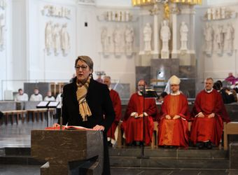 Kritisch setzte sich Bischof Jung mit den Tränen der Frauen auseinander, die Jesus auf seinem Kreuzweg beweinten. Ihr Klagen bleibe äußerlich und führe nicht zur Umkehr. Der Bischof zog Parallelen zur Gegenwart, in der Menschen täglich mit Bildern von Leid konfrontiert seien, ohne dass daraus Konsequenzen entstünden. Solche Formen des Mitleids bezeichnete er als wirkungslos. Als Gegenbild stellte Bischof Jung die Tränen Marias unter dem Kreuz heraus. In ihrem Schmerz zeige sich echtes Mitleiden. Maria stehe exemplarisch für alle Menschen, die Leid unmittelbar erfahren, insbesondere für Mütter, die um ihre Kinder trauern – „in der Ukraine, im Sudan, in Gaza, im Iran“. Der Karfreitag mache deutlich, dass es nicht bei äußerer Betroffenheit bleiben dürfe, sagte der Bischof. Entscheidend sei ein mitleidendes Herz, das zur Umkehr und zu einem veränderten Leben führe.